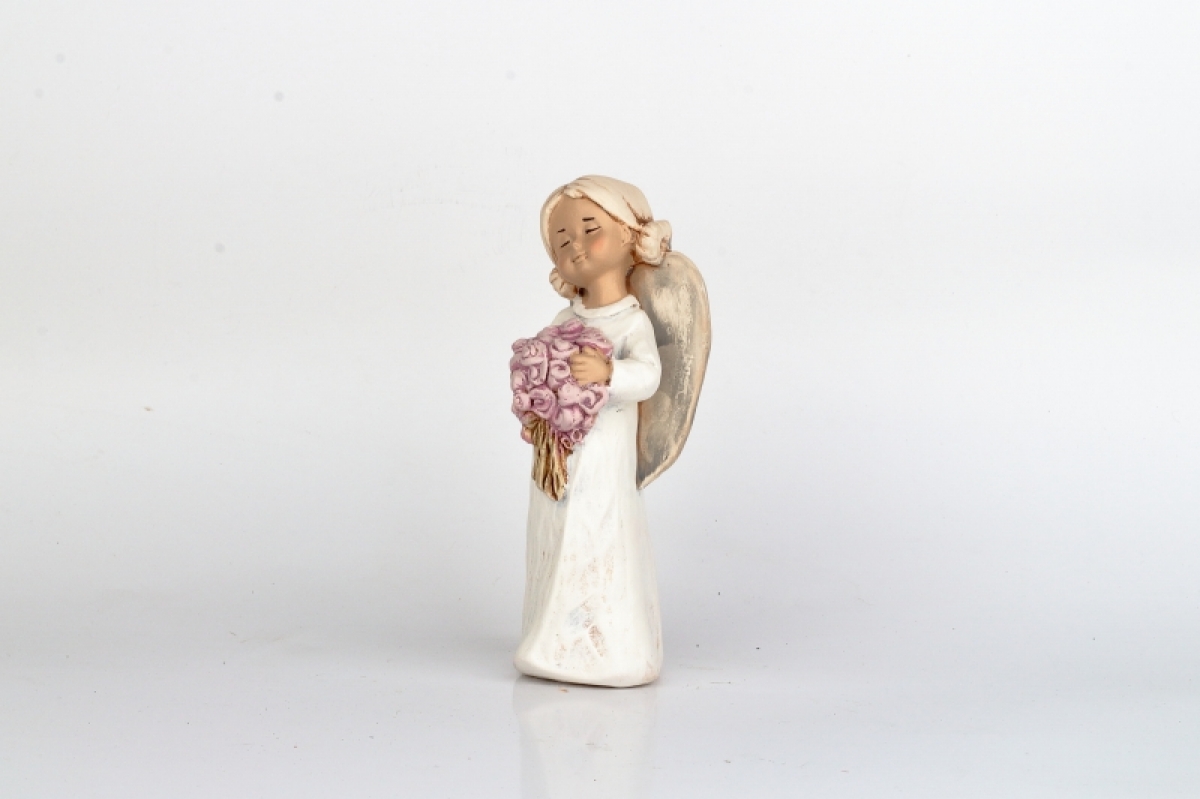 Soška anjela s kyticí s výškou 15cm.