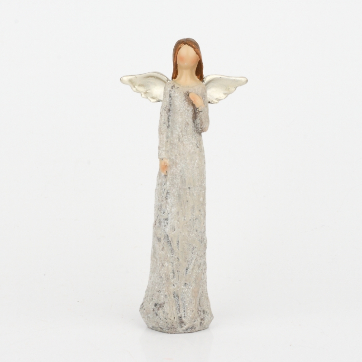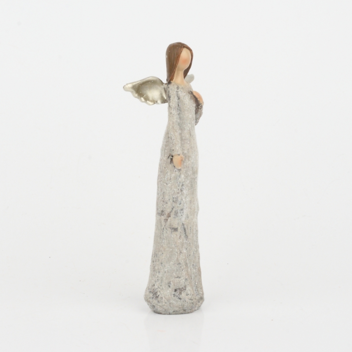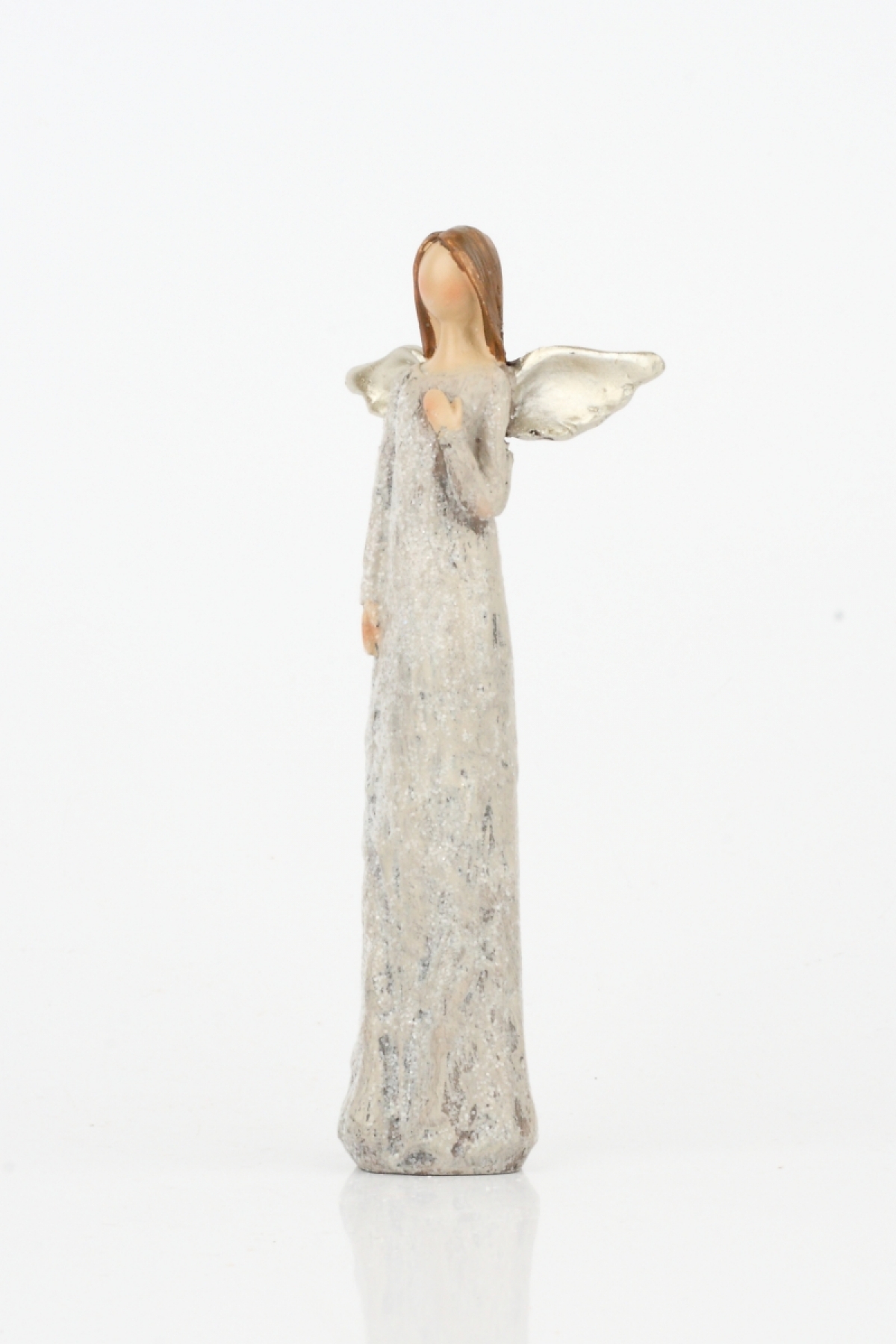Soška anjela sa trblietavými šaty Ruka na srdci 13cm