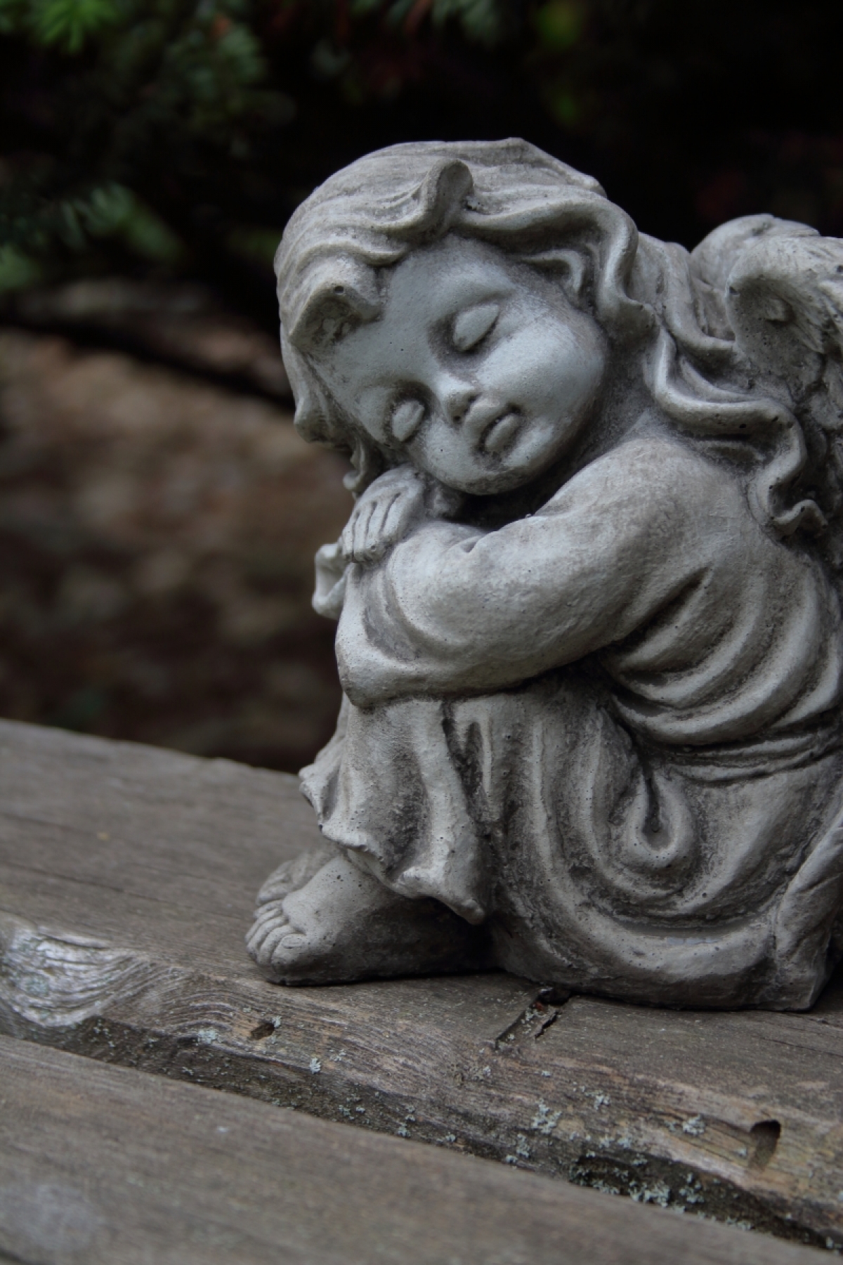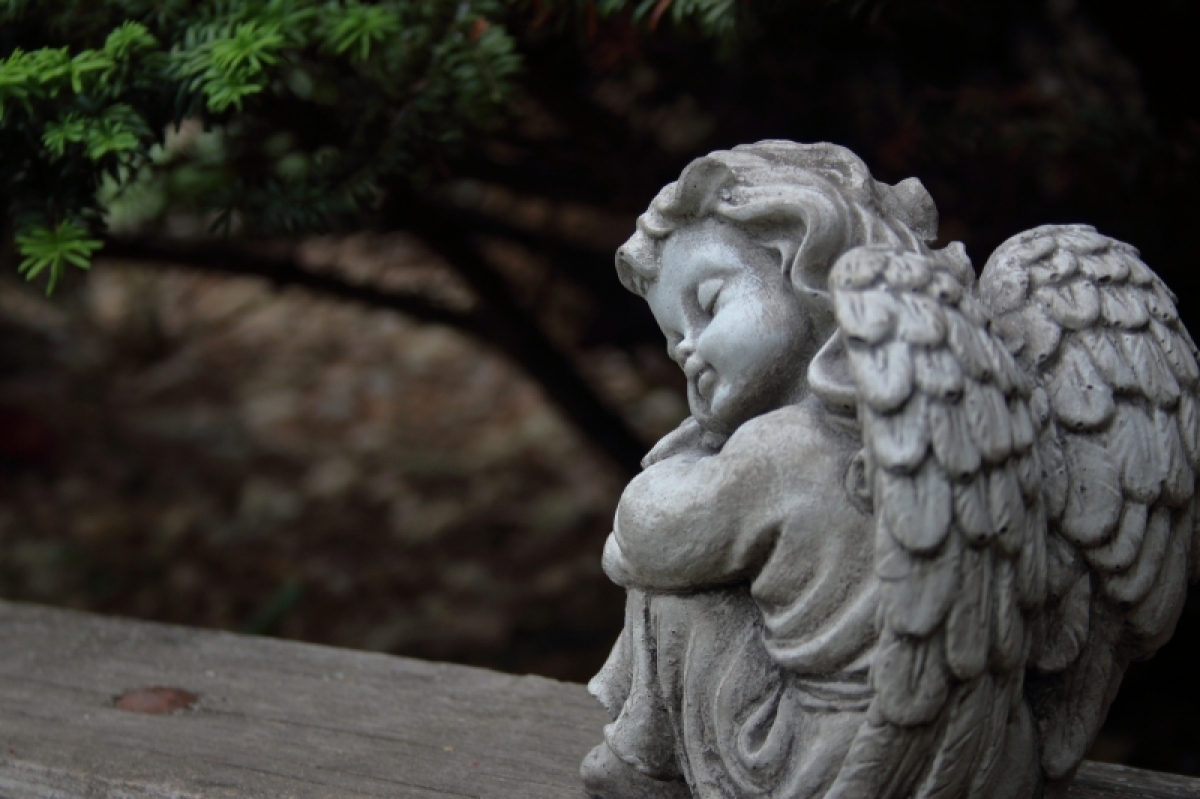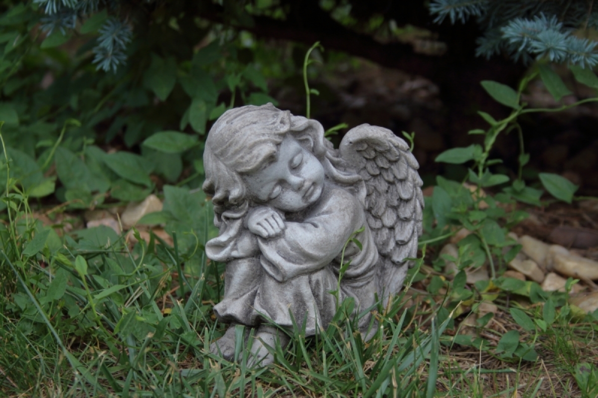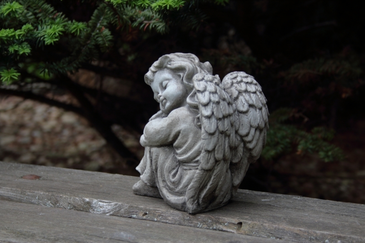 Soška anjela v podobe dieťaťa vyrobená z betónu