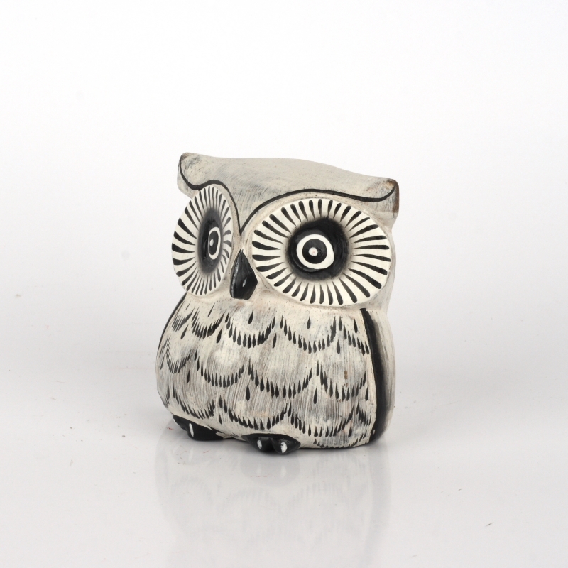 Drevená soška bielej sovy je dostupná vo viacerých veľkostiach.