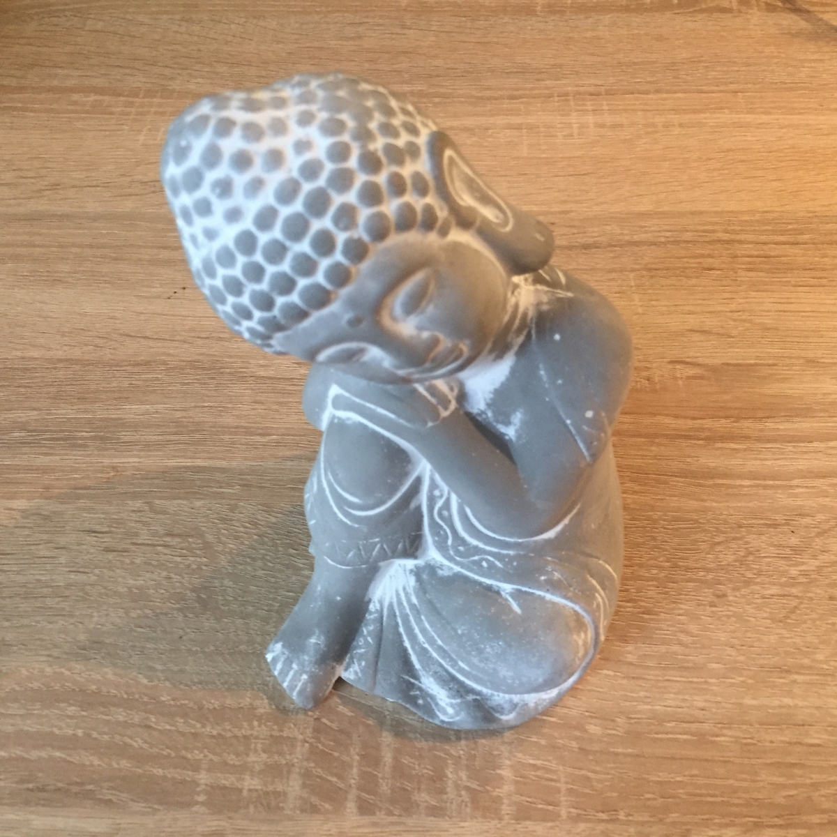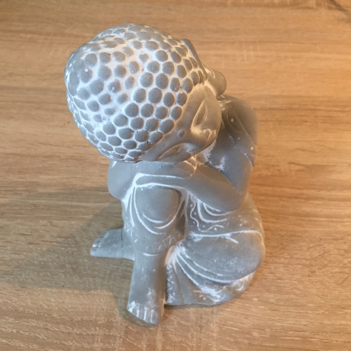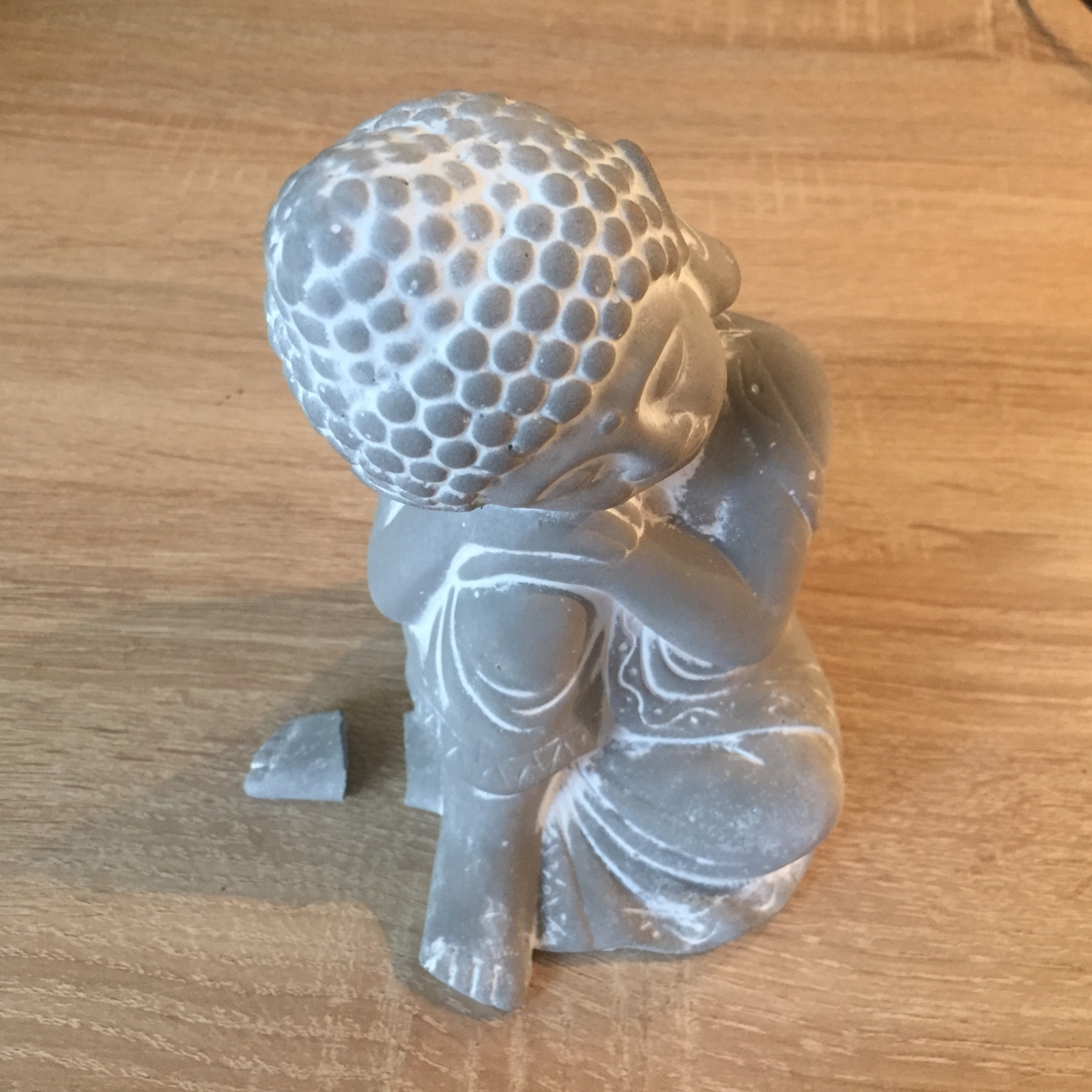 Soška budhy byla vyřazena z důvodu oddělění chodidla buddhy. Nepatrné poškození ve spodní části, které naprosto splyne a je přehlédnutelné.
