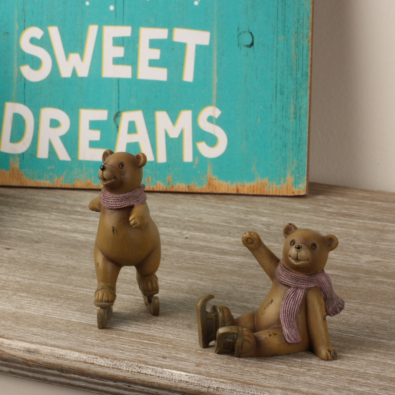 Soška medvedík na korčuliach 9x6x7cm ozdobí polici v detskej izbe a v deťoch prebudí fantáziu.