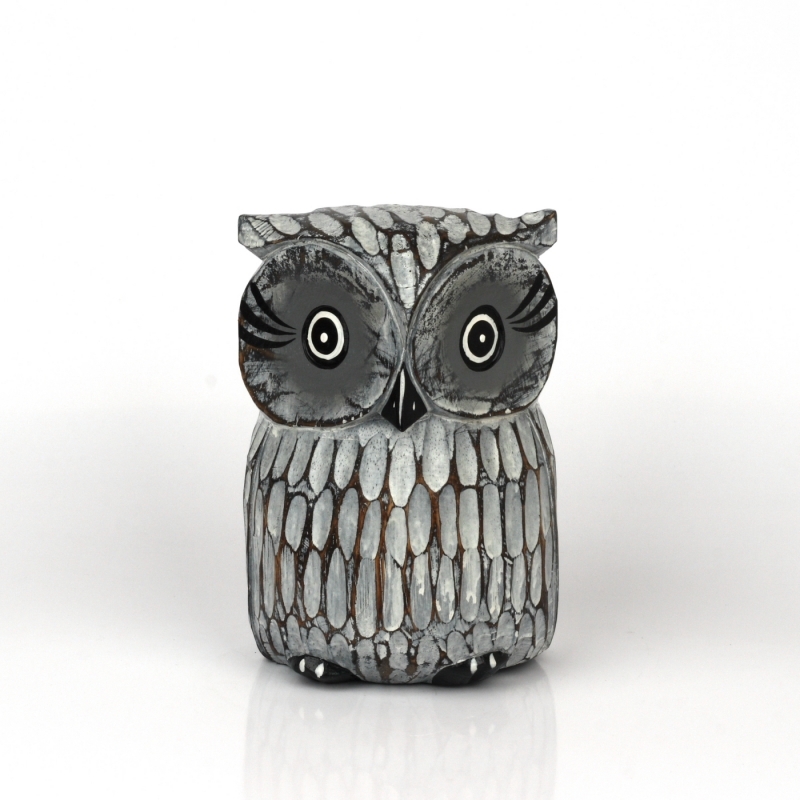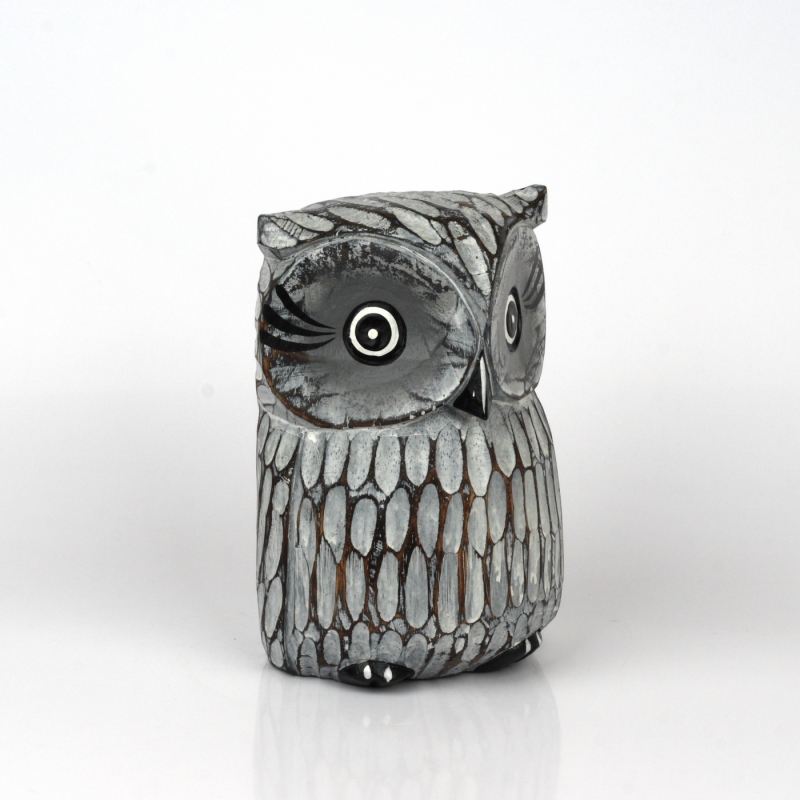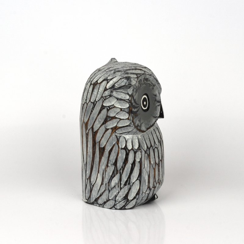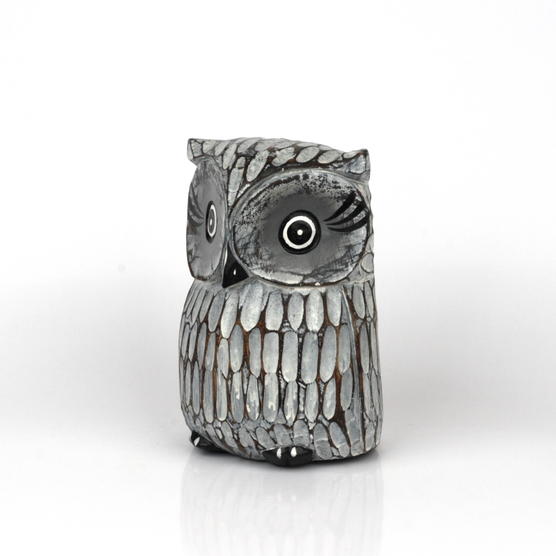 Soška drevená sova šedá 21cm