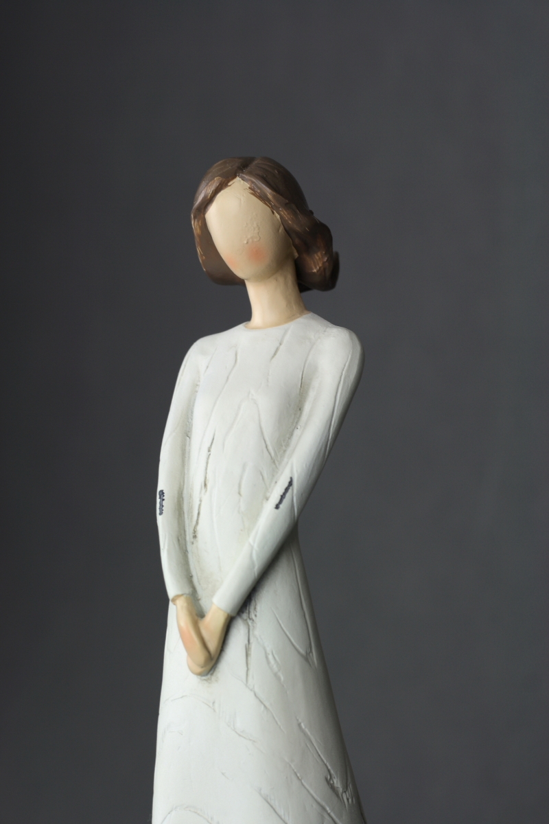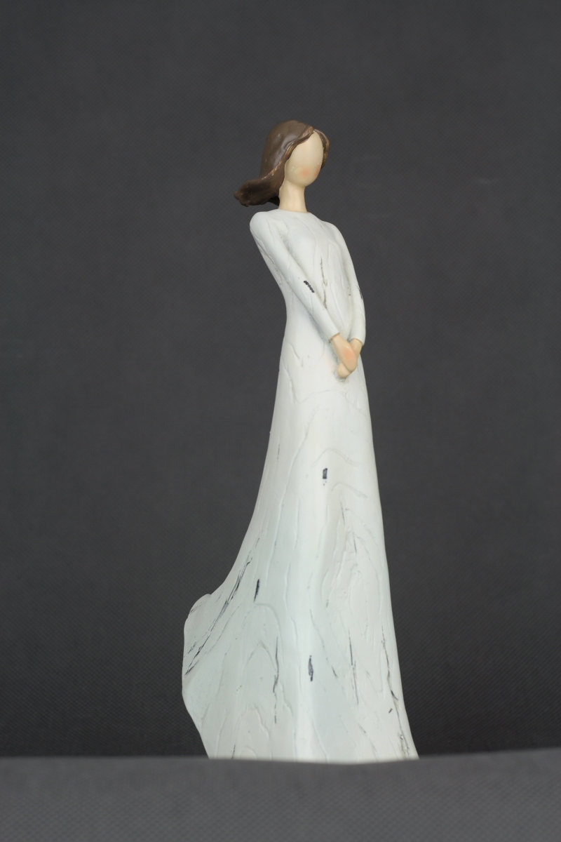 Soška Krehká duša 25,5 cm má podobu štíhle slečny v dlhých bielych šatách, ktorá naozaj pôsobí veľmi krehko a zraniteľne.