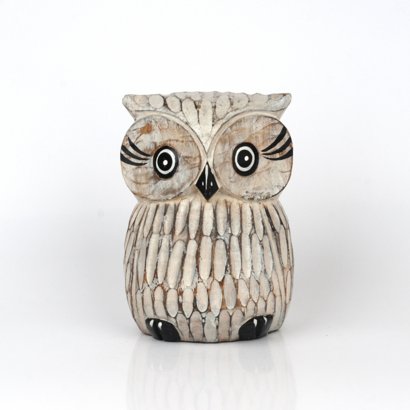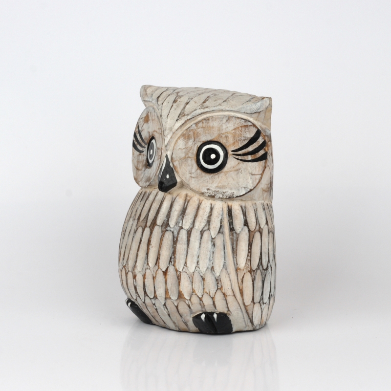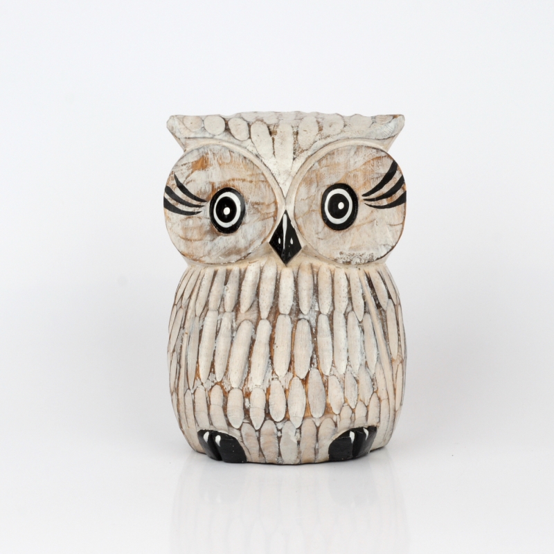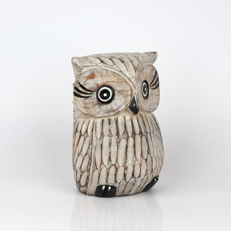 Soška je vyrezaná z ľahkého dreva s patinou. Soška sovy je krásnym darčekom pre vašich blízkych. Je v ponuke hneď v niekoľkých veľkostiach a farbách.