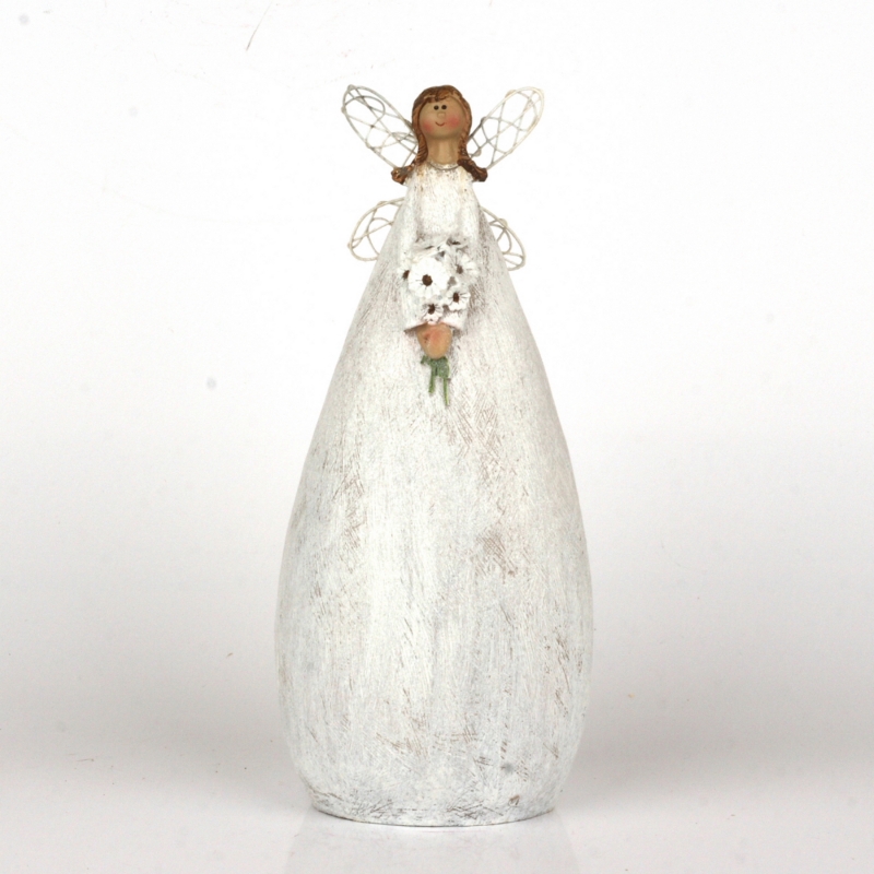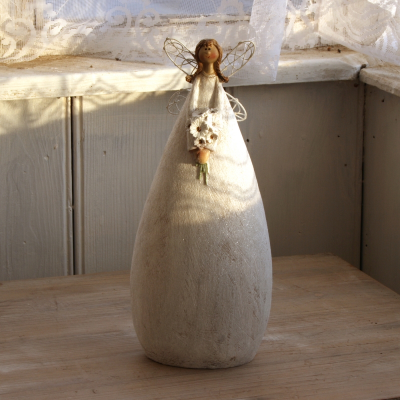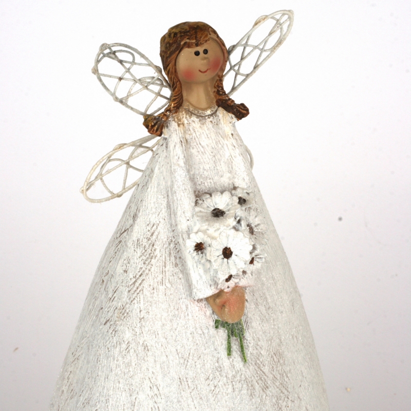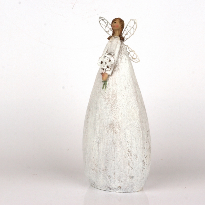 Soška víla v bielych šatách s kyticou 27cm pre všetky romantické a nežné duše, ktoré sa rady obklopujú doplnky, ktoré zahrejú na duši.