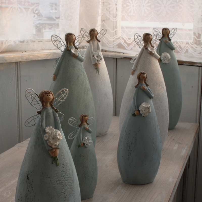 Víla v dlhých bielych šatách s jemným leskom bude strážiť váš domov vo dne v noci. Drží v rukách kyticu margarét a patrí do kolekcie plnej rozprávkových víl. V kategórii nájdete sošky v rôznych veľkostiach a farbách.