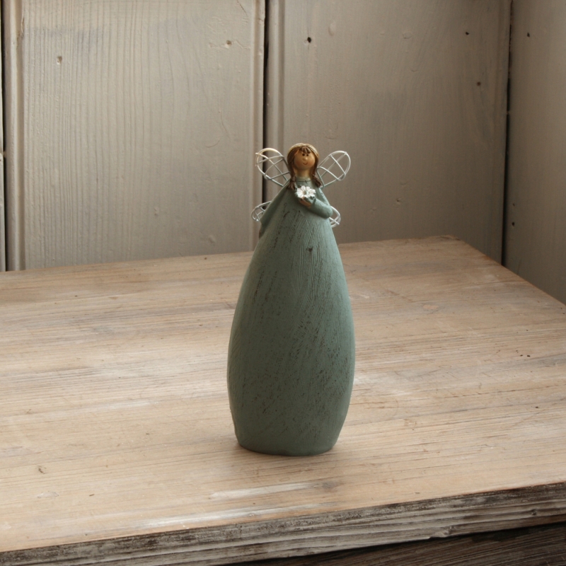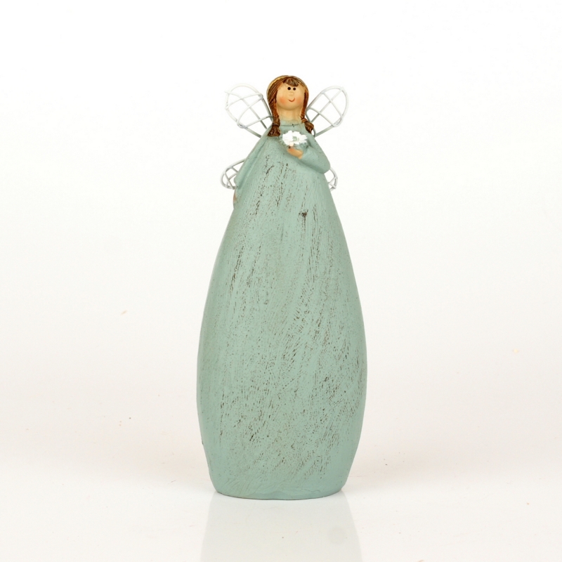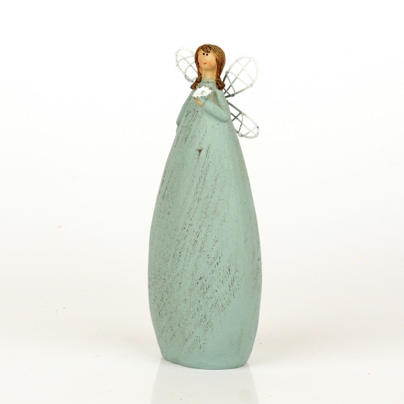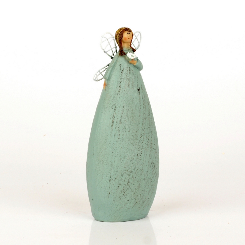 Soška víla v modrých šatách Ruka na srdci 15cm pre všetky romantické a nežné duše, ktoré sa rady obklopujú doplnky, ktoré zahrejú na duši.