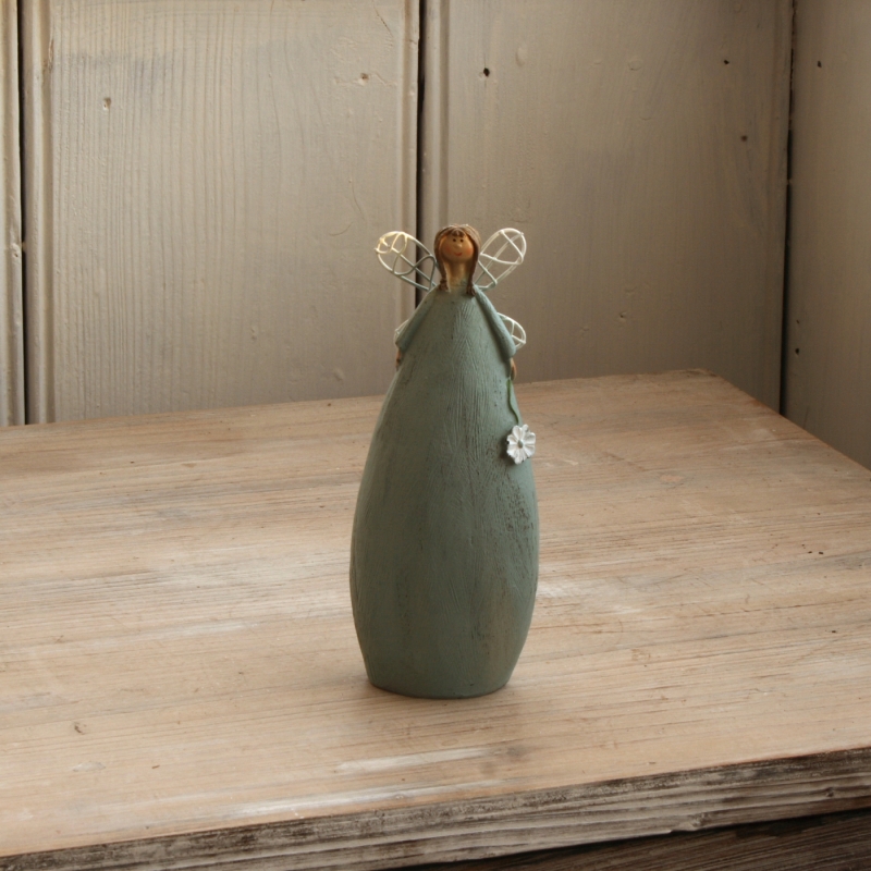 Soška víla v modrých šatách s květinou 15cm pre všetky romantické a nežné duše, ktoré sa rady obklopujú doplnky, ktoré zahrejú na duši.