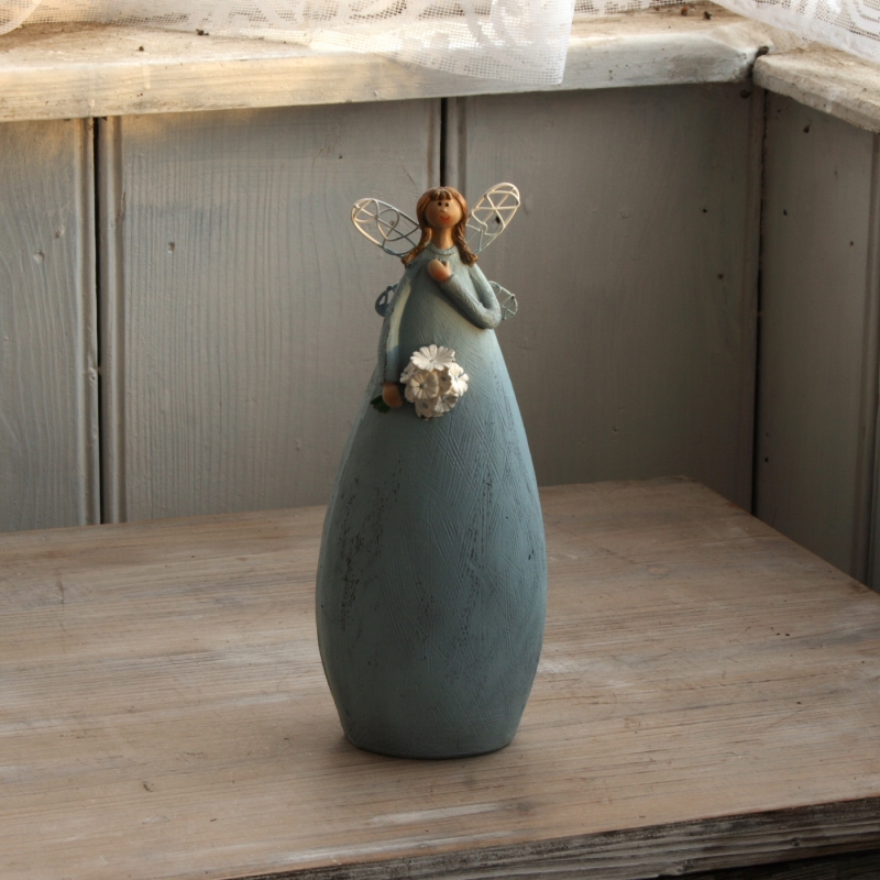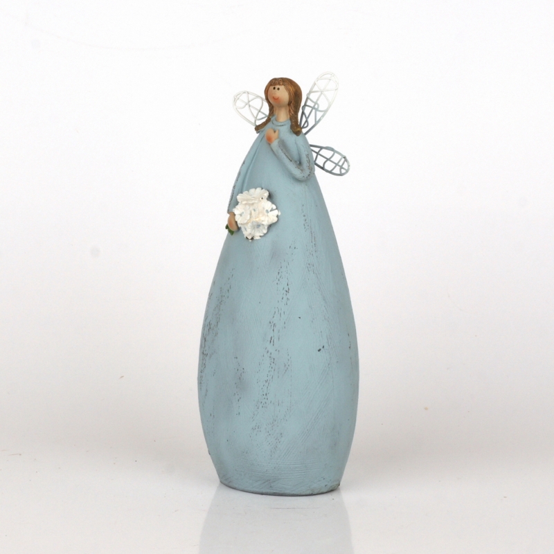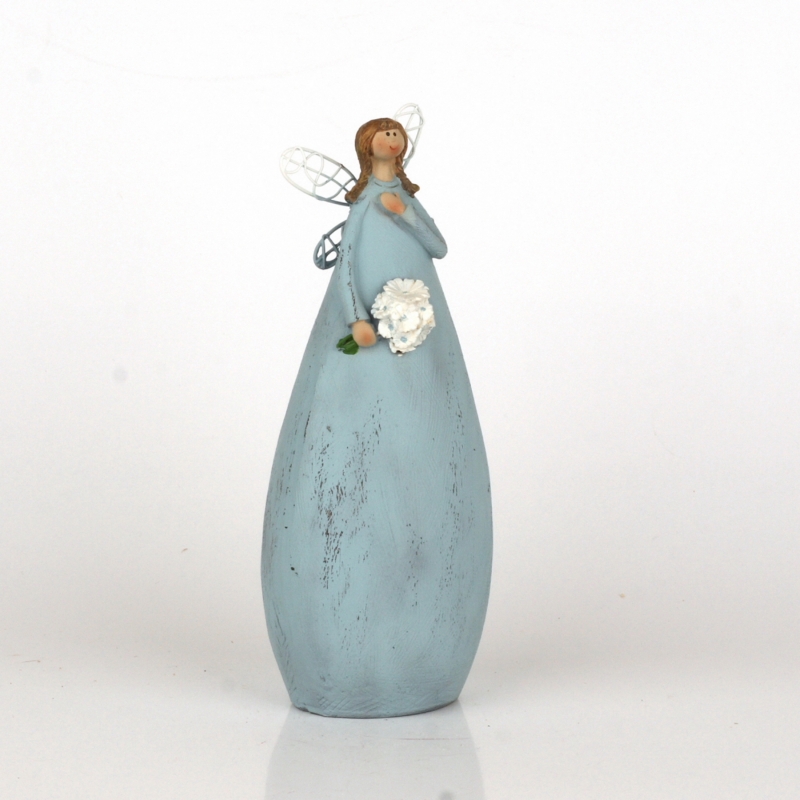 Soška víla v modrých šatách s kyticou 20cm pre všetky romantické a nežné duše, ktoré sa rady obklopujú doplnky, ktoré zahrejú na duši.