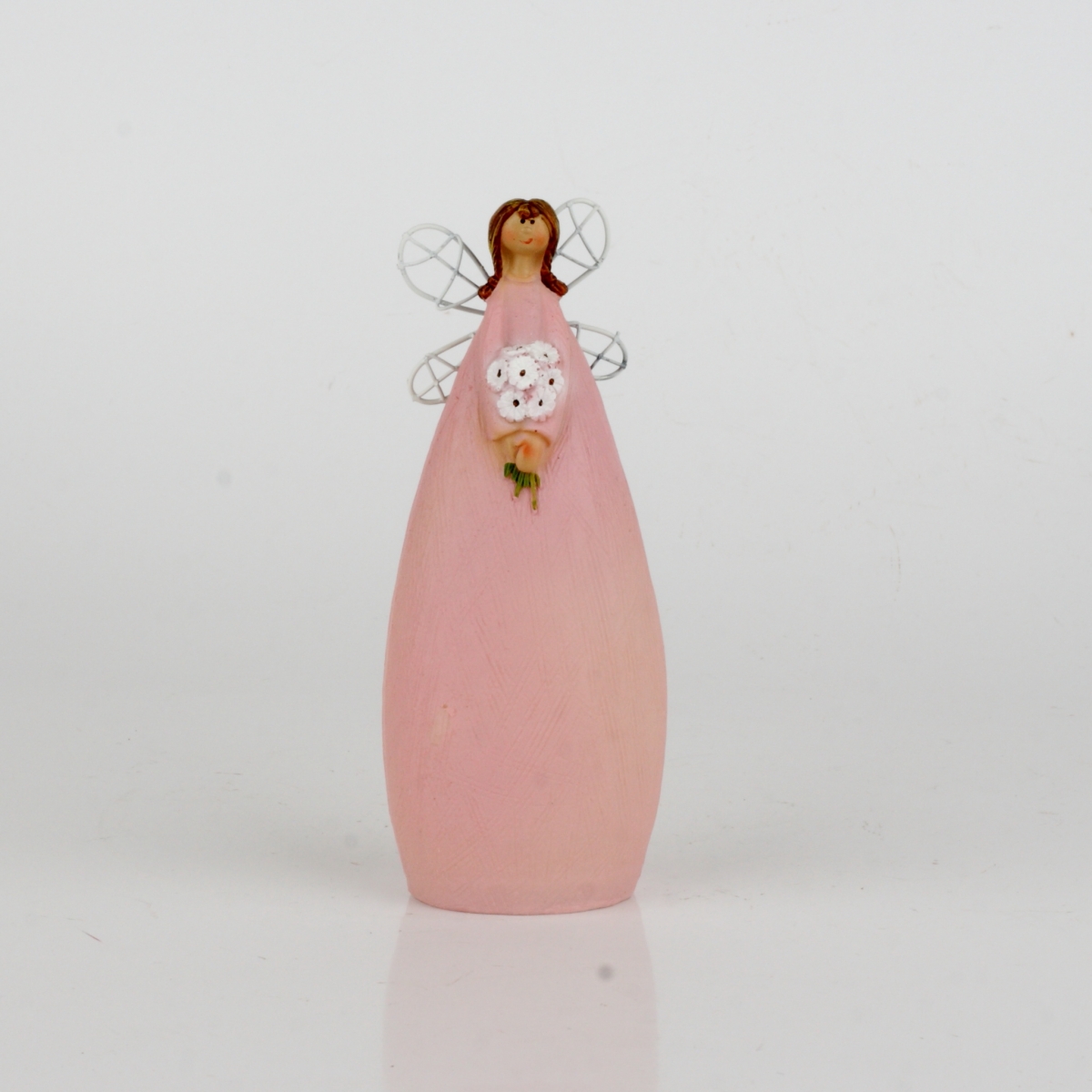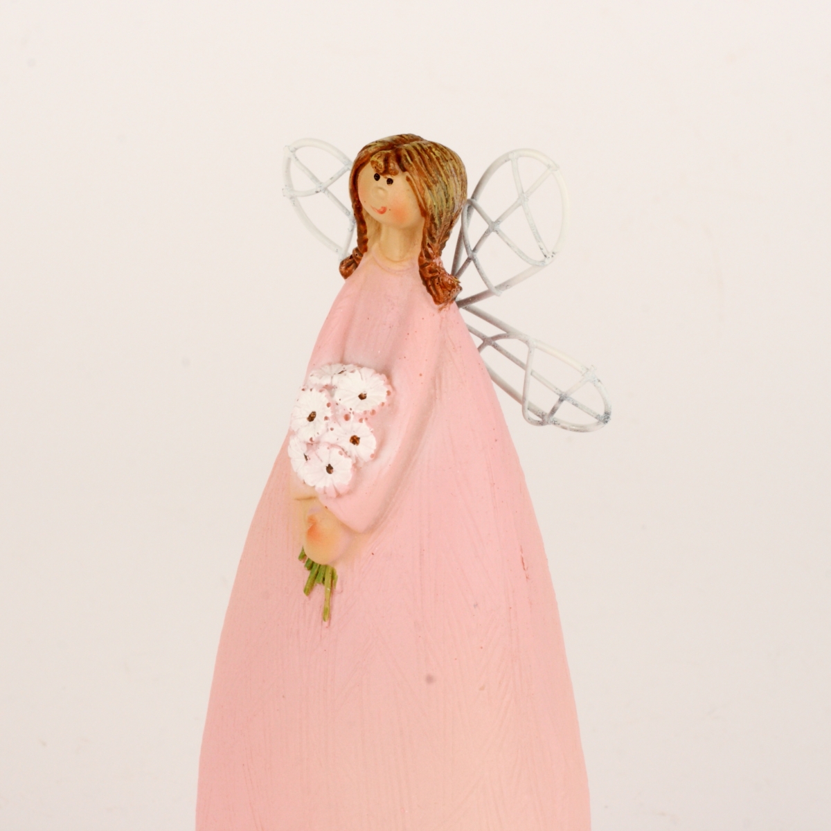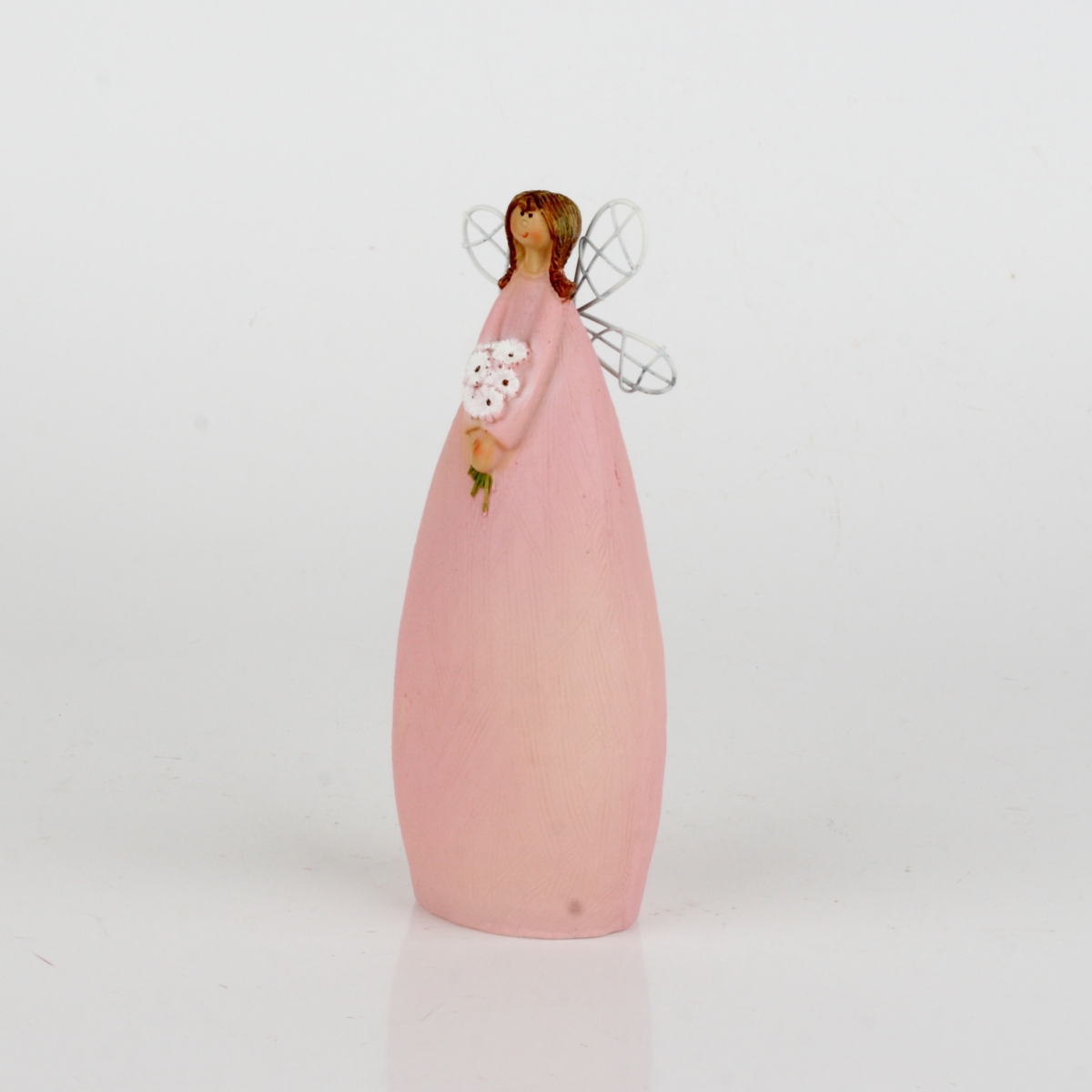 Víla v dlhých ružových šatách s jemným leskom bude strážiť váš domov vo dne v noci. Drží v rukách kyticu margarét a patrí do kolekcie plnej rozprávkových víl. V kategórii nájdete sošky v rôznych veľkostiach a farbách.