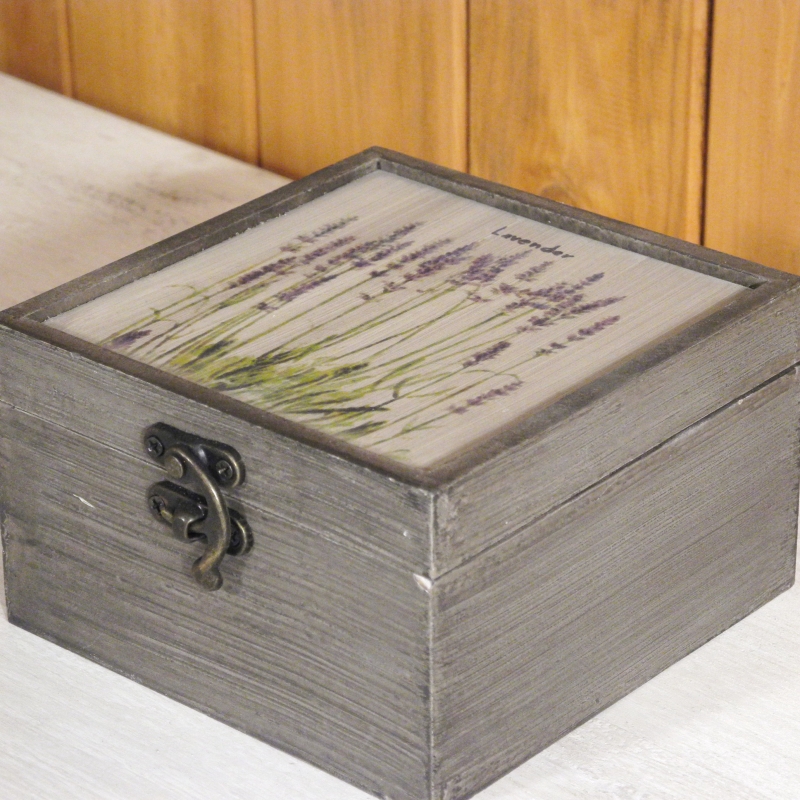 Šperkovnica drevená - motív levanduľa 13x13x8cm