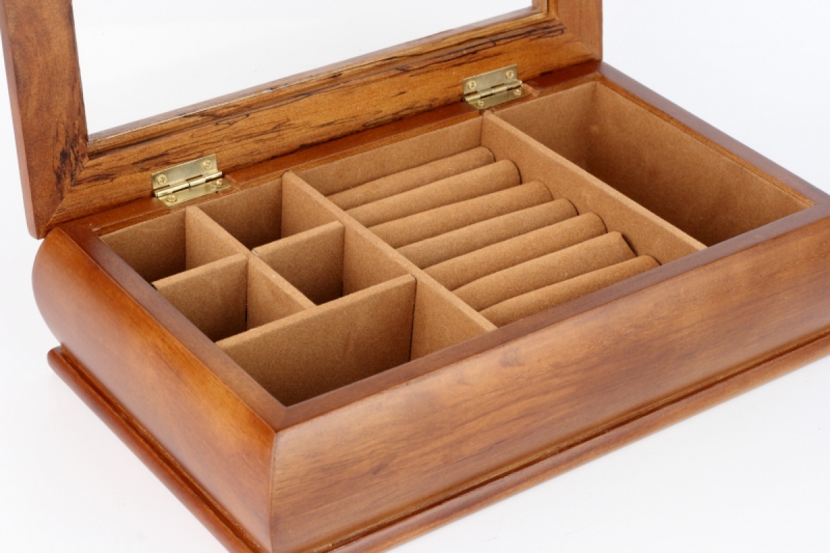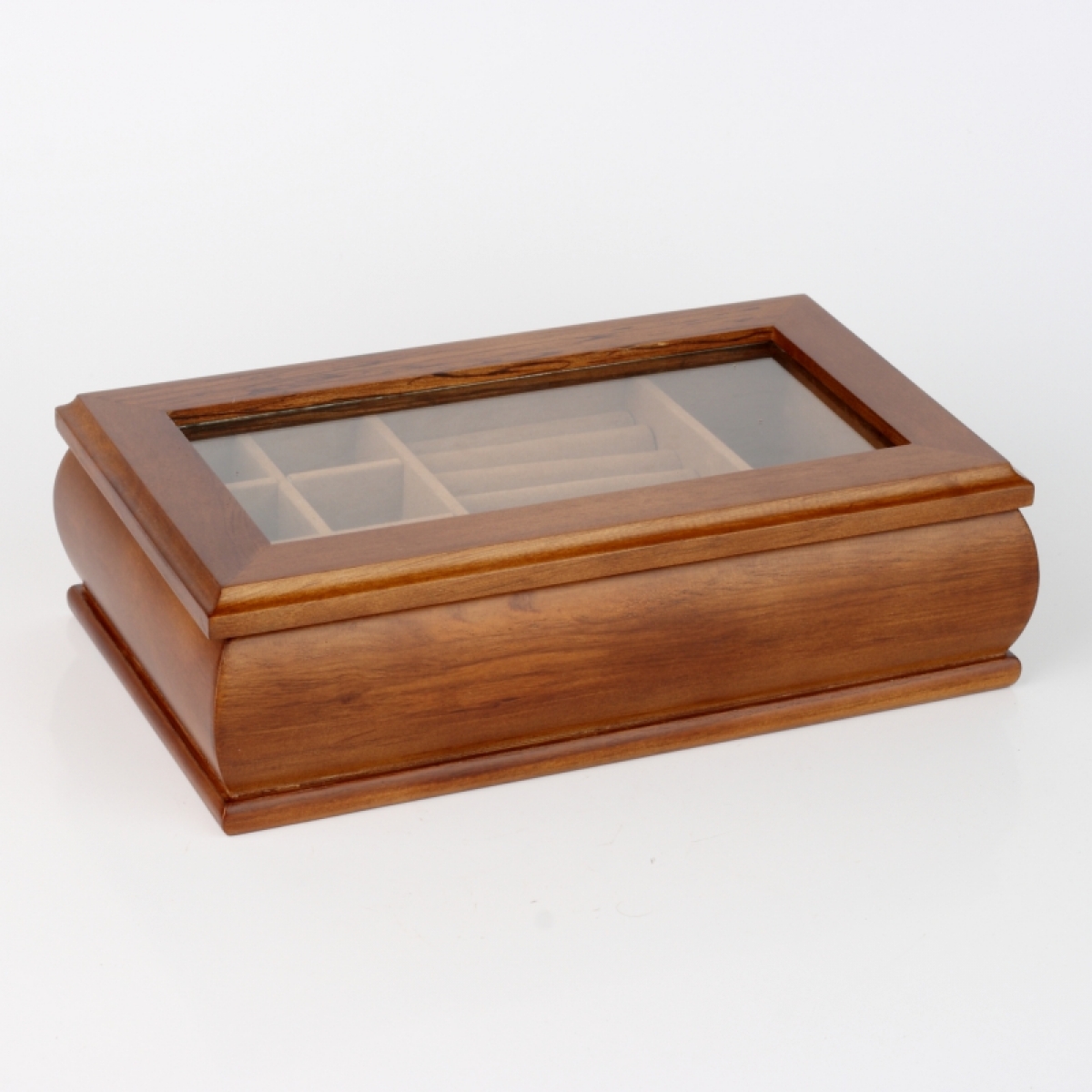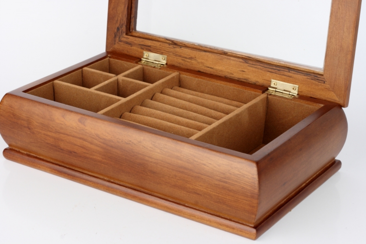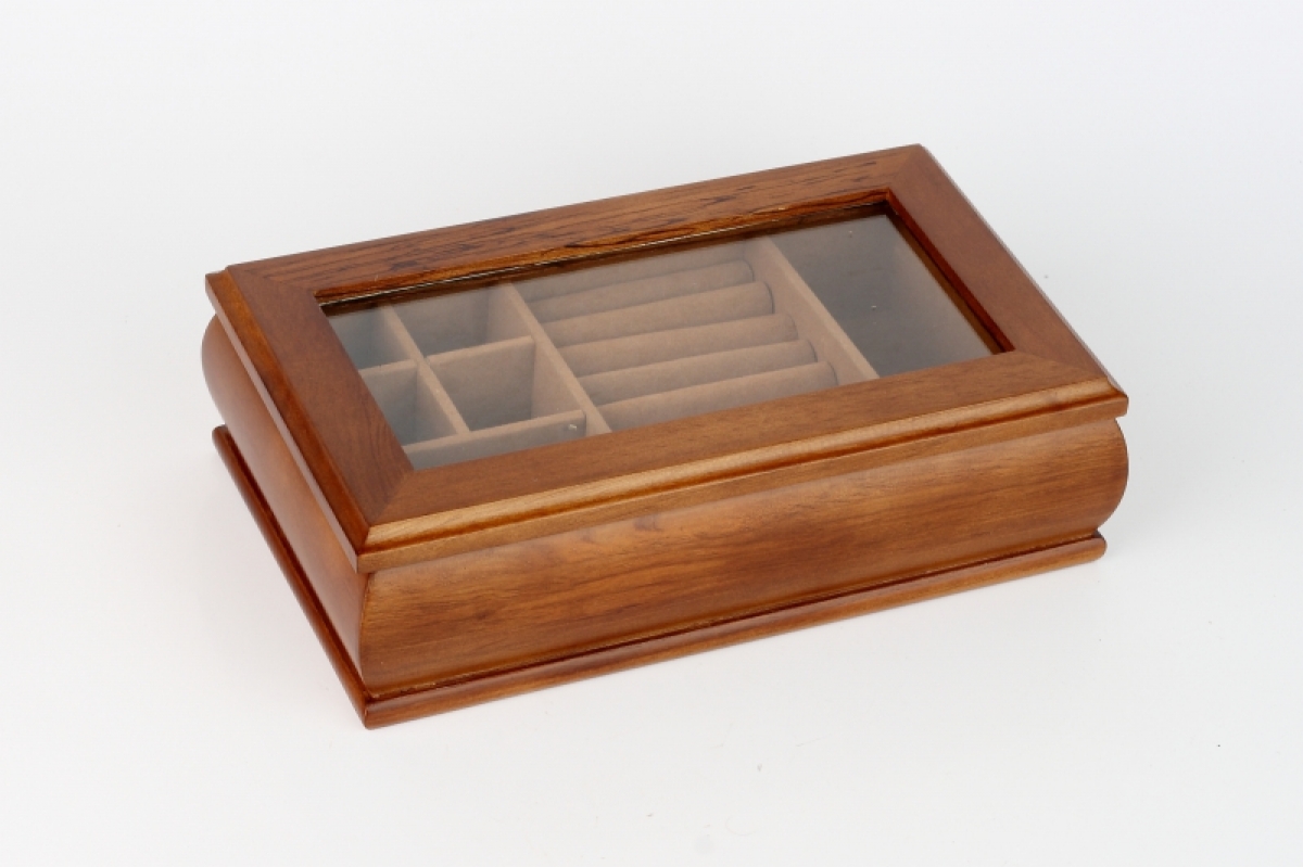 Šperkovnice dřevěná s proskleným víkem 27x16x7cm se spoustou úložného prostoru na prstýnky, náušnice i řetízky.