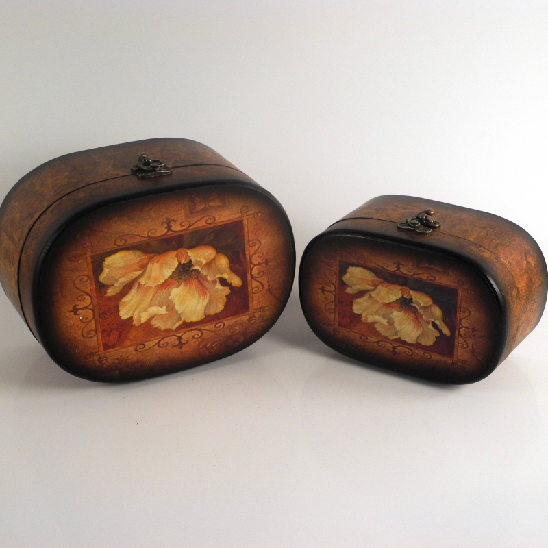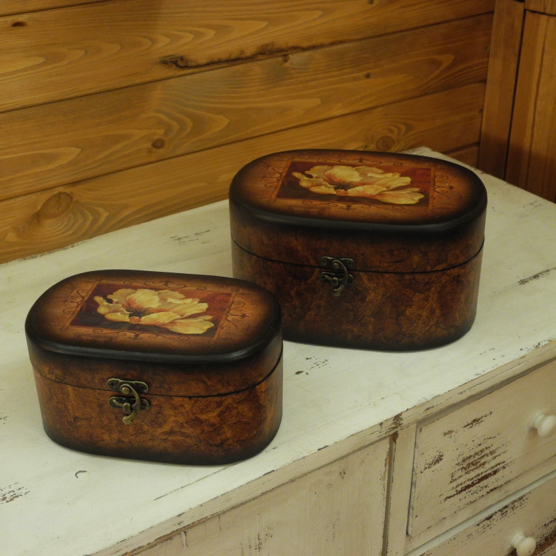 Obe šperkovnica majú krásny zaoblený tvar, jemne prepracovaný uzáver a sú ozdobené motívom kvetín.