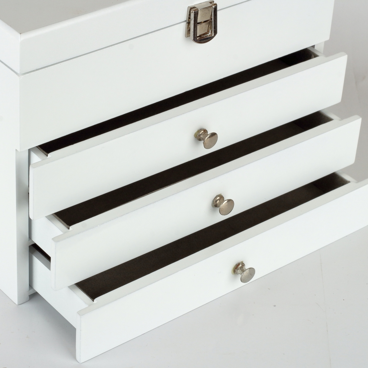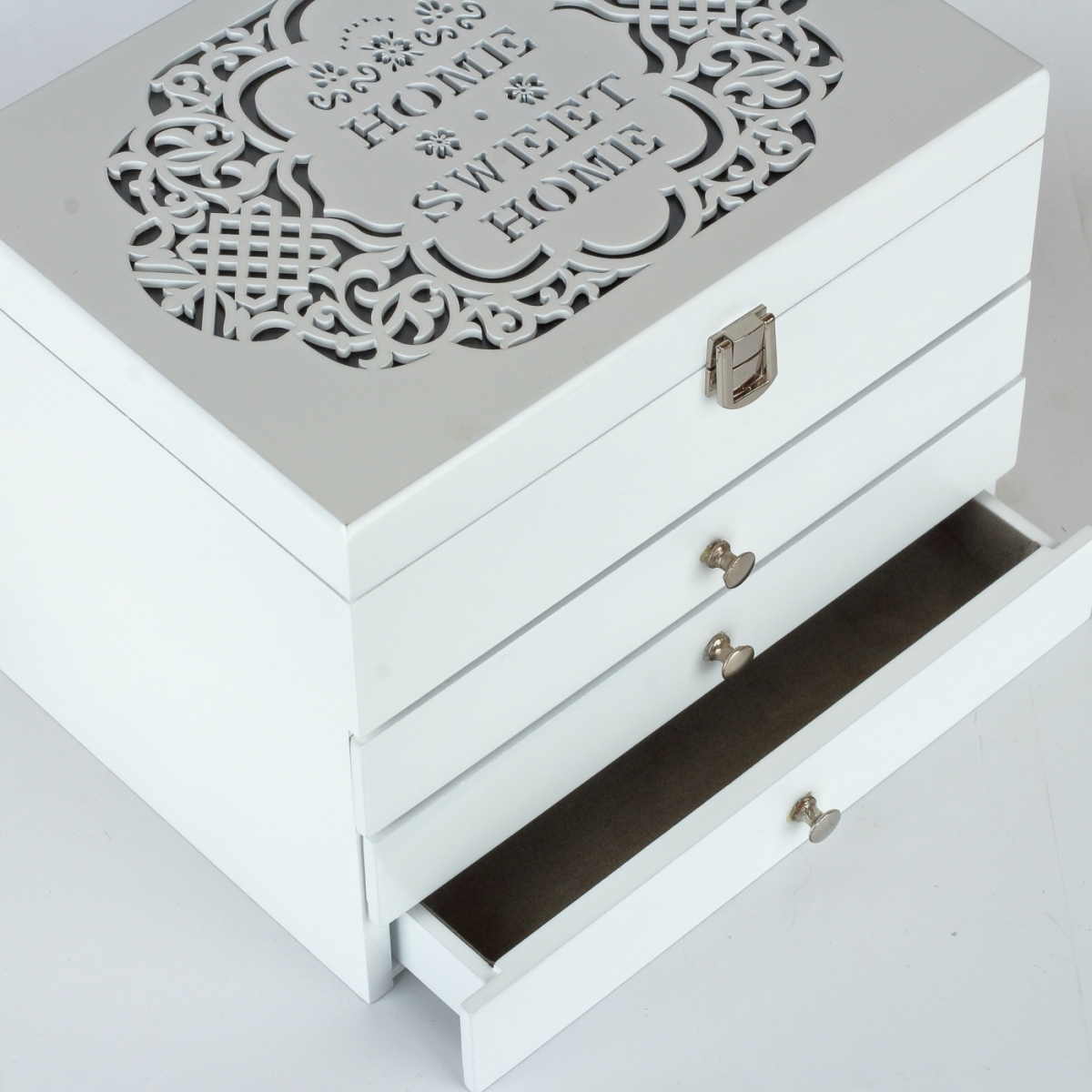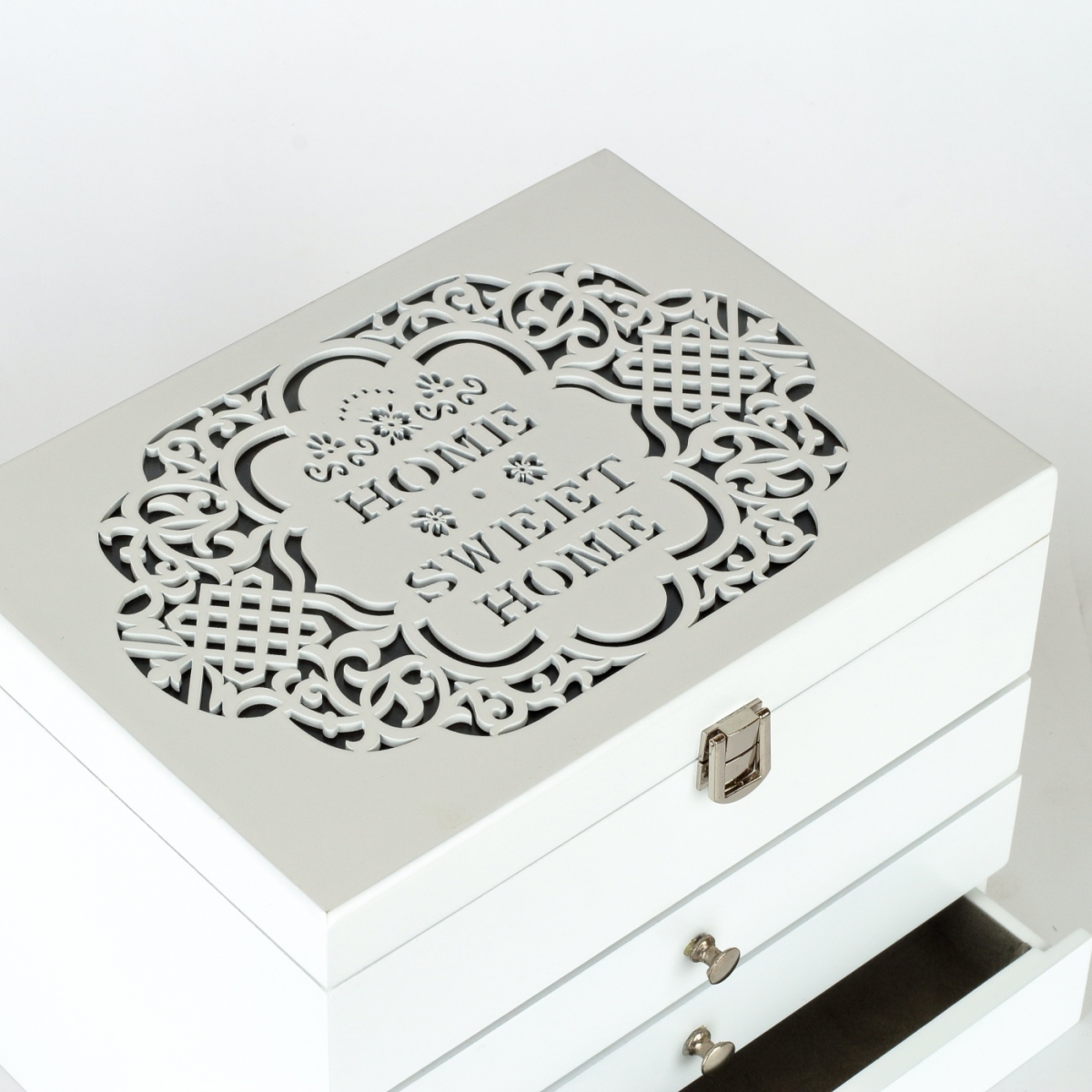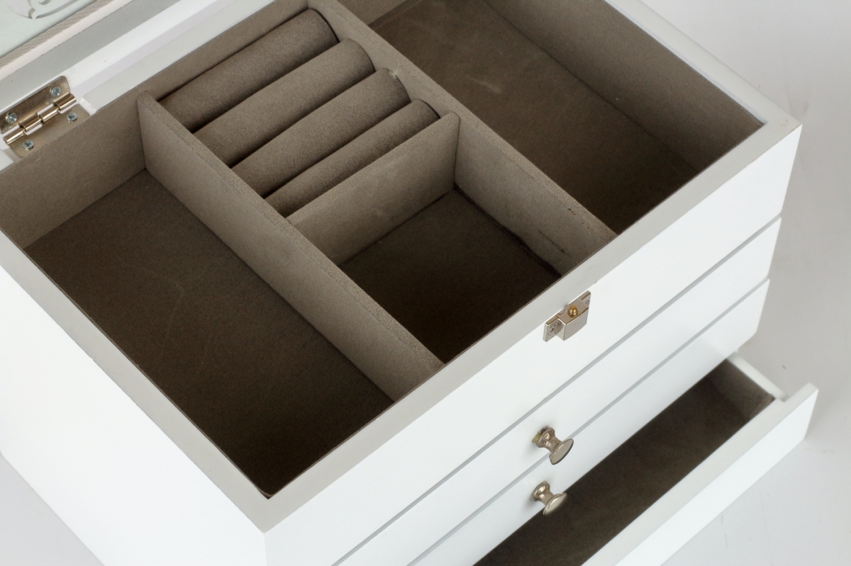 Veľká šperkovnica pre ženy, ktoré potrebujú usporiadať a udržiavať svoje náušnice a ďalšie menšie šperky na jednom mieste. Naša veľká šperkovnica je vyrobená z kvalitného dreva, čo ju robí pevnou a odolnou, s lakom na povrchu, pre ľahkú údržbu.