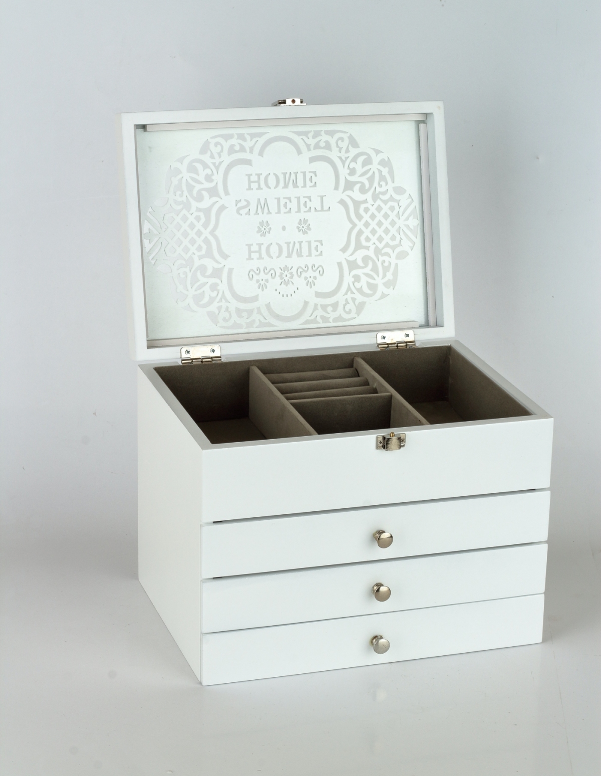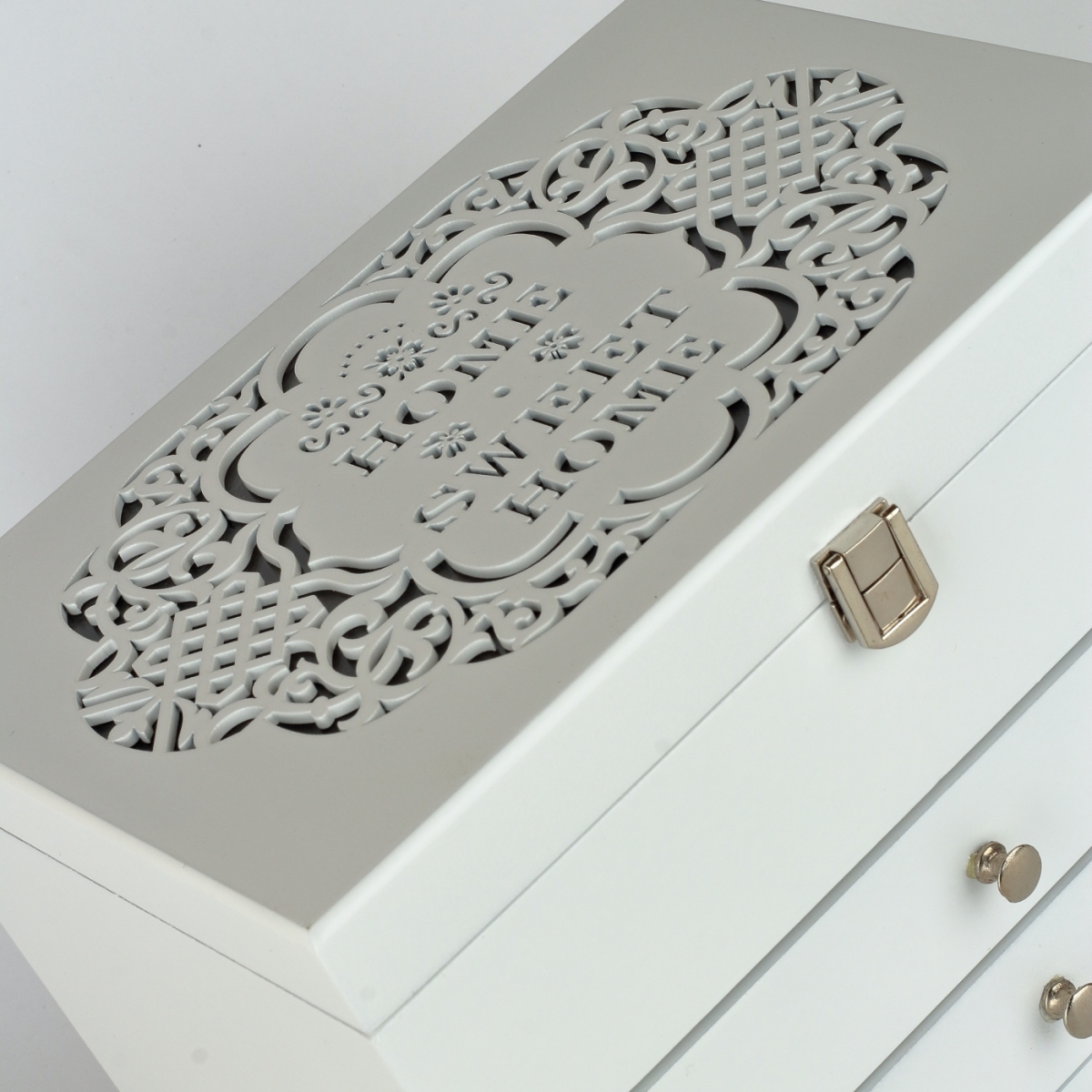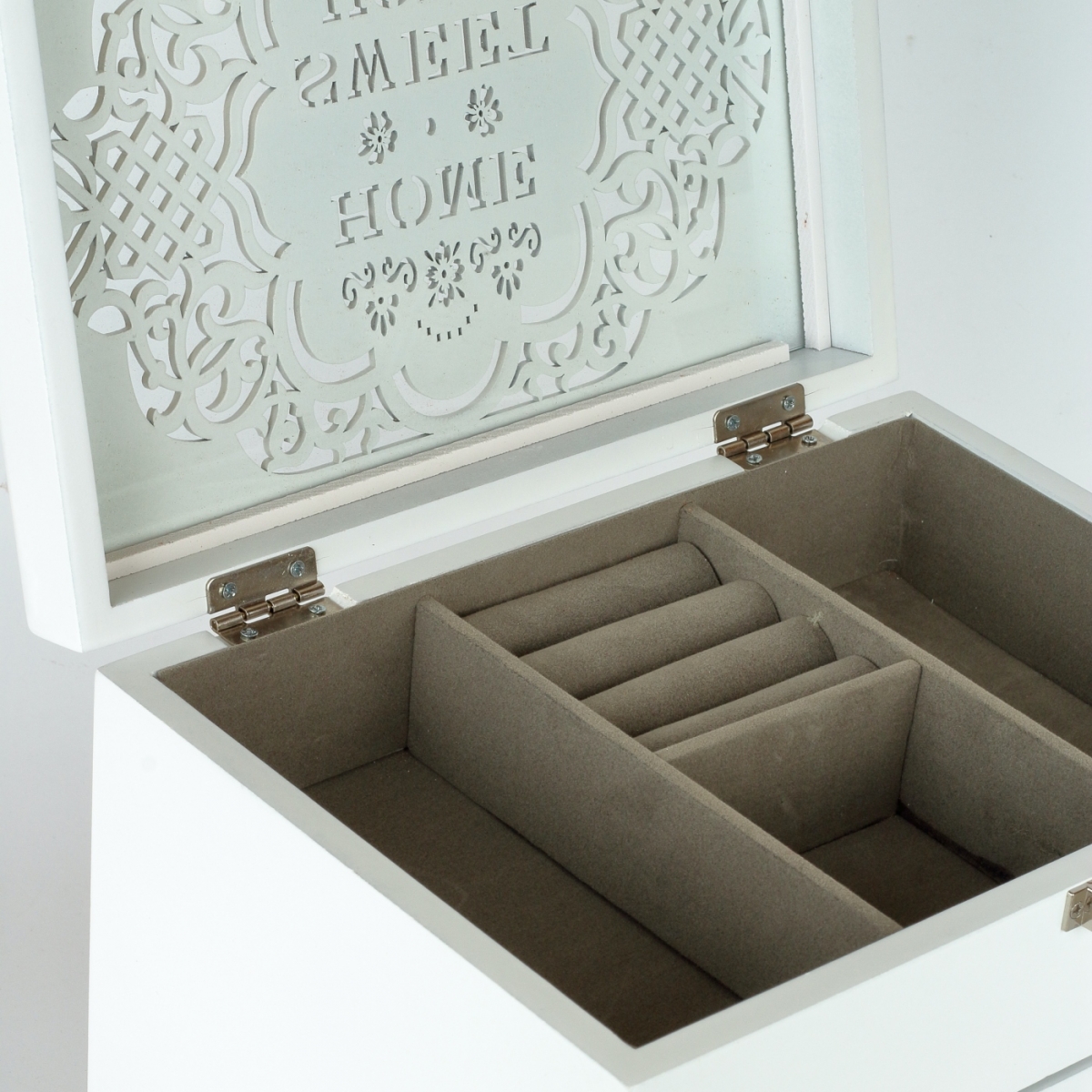 Veľká šperkovnica pre ženy, ktoré potrebujú usporiadať a udržiavať svoje náušnice a ďalšie menšie šperky na jednom mieste. Naša veľká šperkovnica je vyrobená z kvalitného dreva, čo ju robí pevnou a odolnou, s lakom na povrchu, pre ľahkú údržbu.