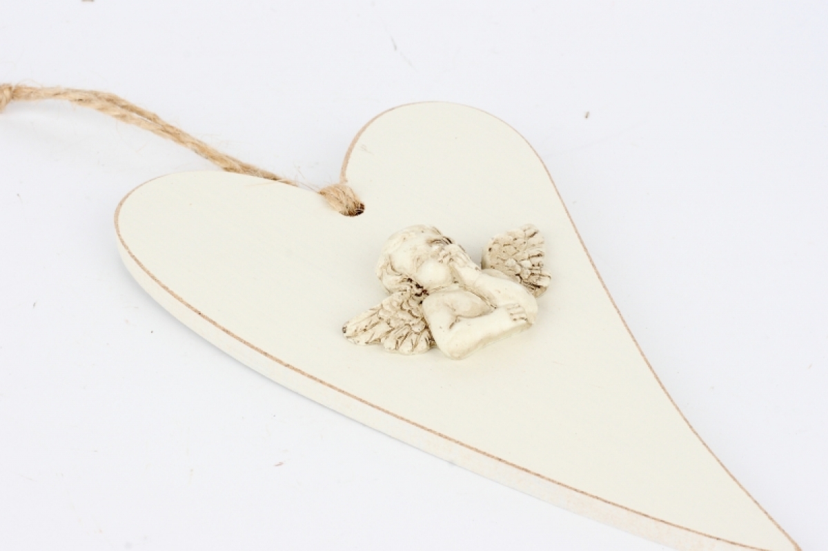 Srdce s anjelom drevené 17x10cm