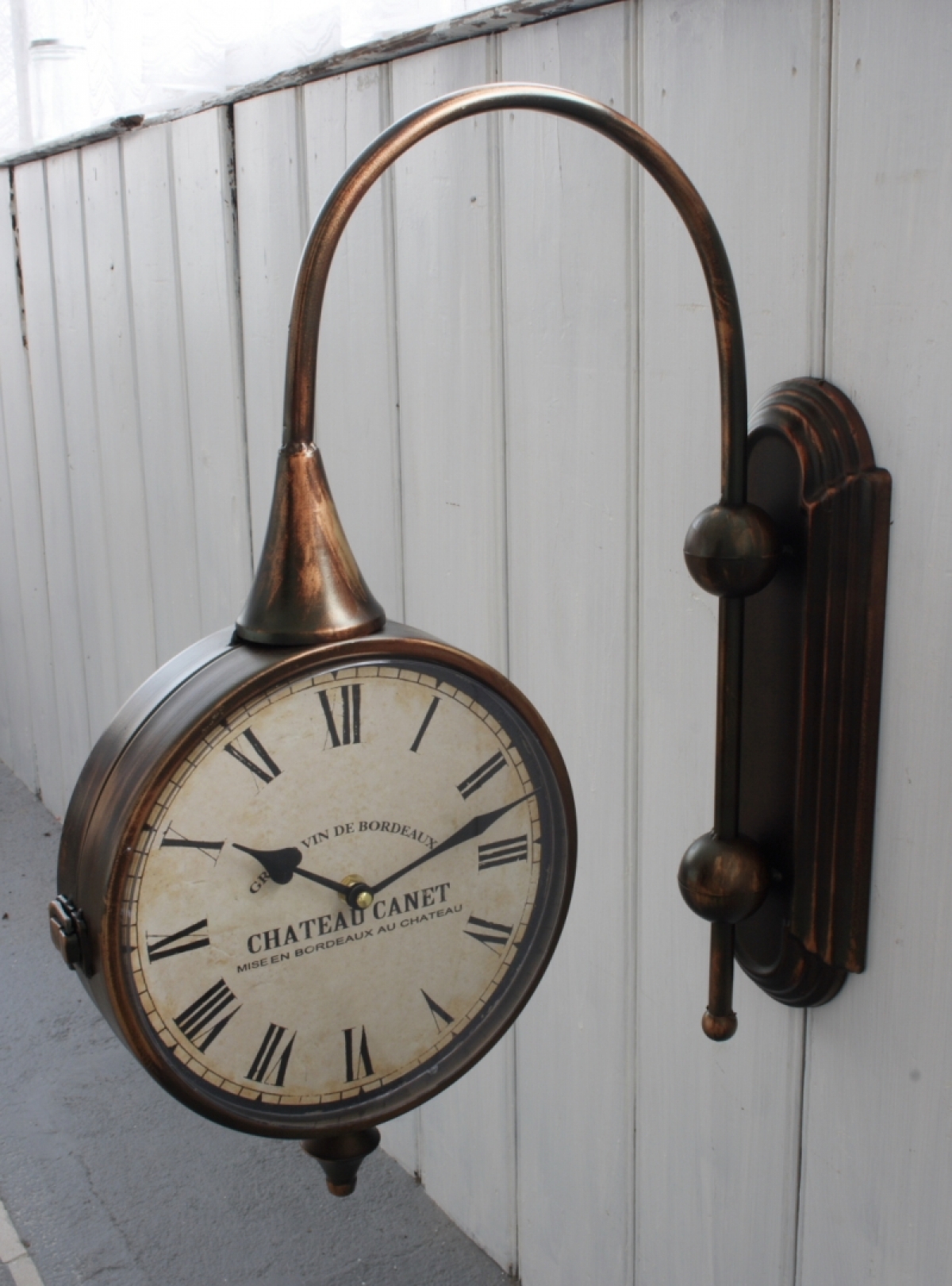 Nástěnné oboustranné hodiny byly vyřazeny z důvodu chybějících sklíček ciferníku.
