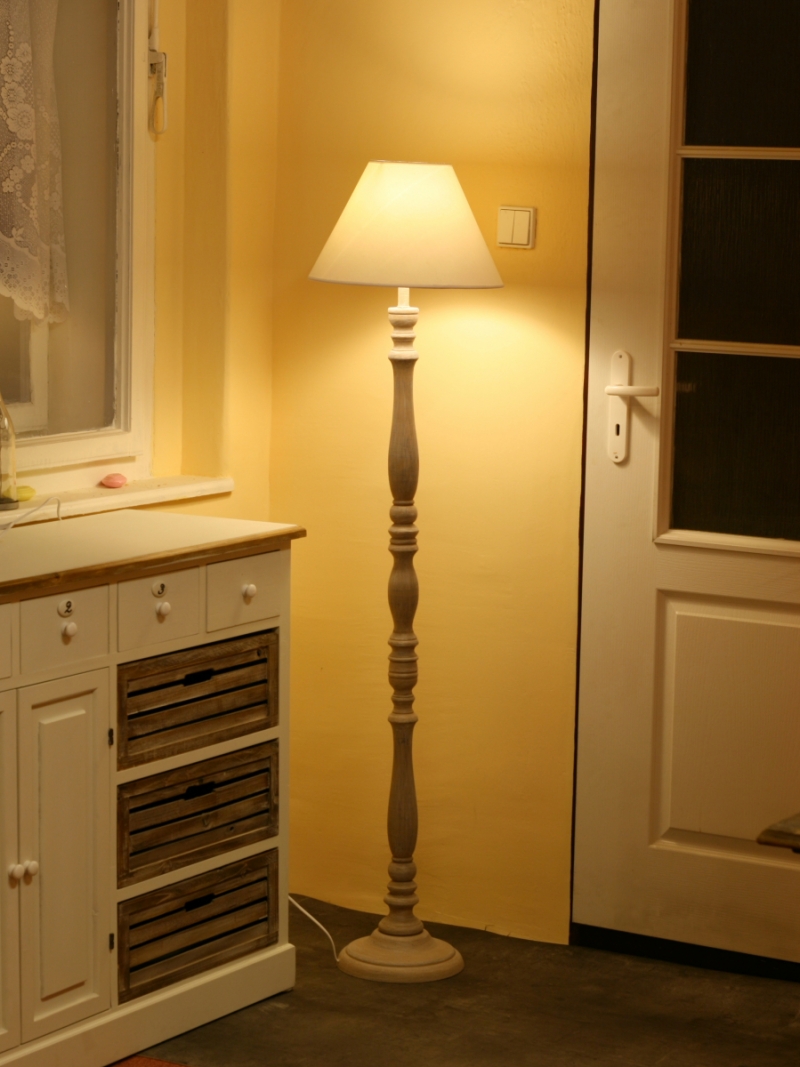 Stojaca lampa krémová - podstavec 136cm je nádherným doplnkom interiérov vo vidieckom štýle.