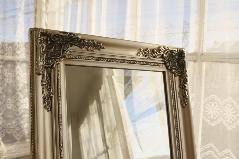 Zrkadlo slúži nielen ku kontrole nášho vzhľadu a ako štýlový doplnok, ale zároveň krásne odráža svetlo a priestor opticky zväčšuje. Stojací zrkadlo so strieborným bohato zdobeným rámom je naozaj kúzelné, ako z rozprávky.