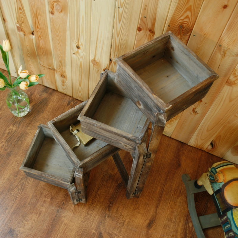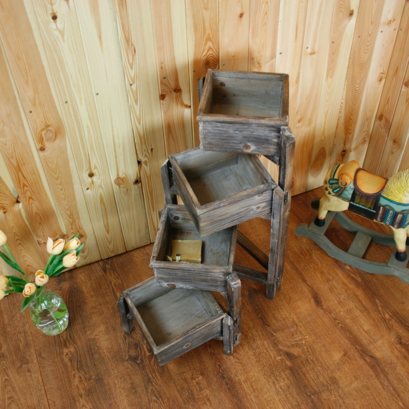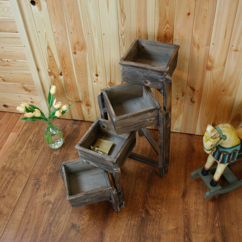 Stojan je vyrobený z dreva s patinou.