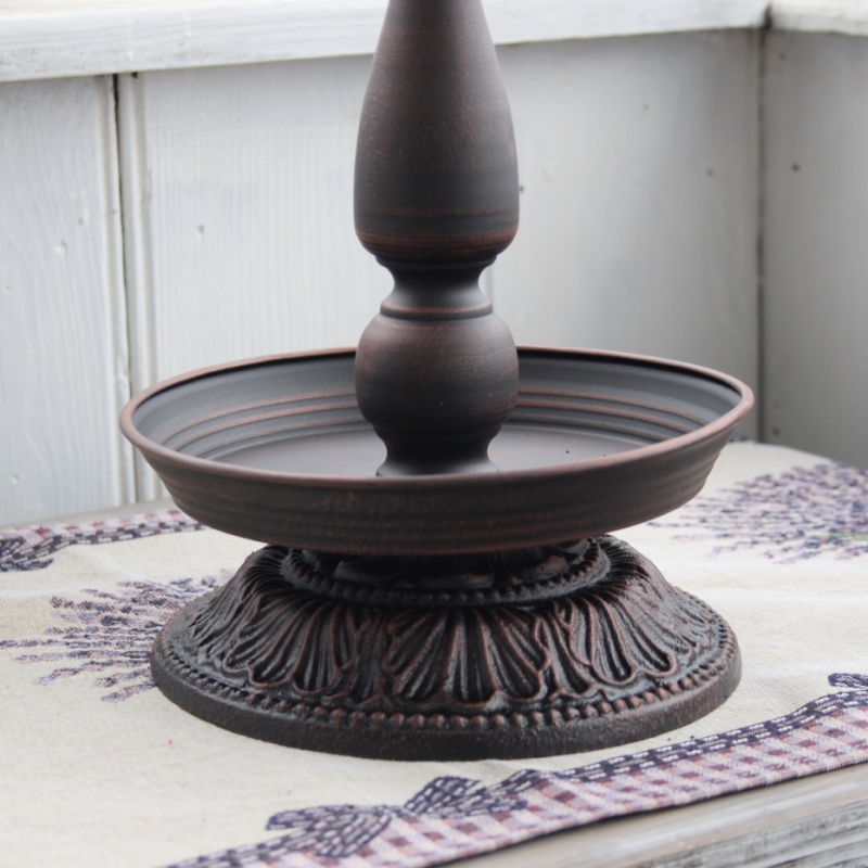 Rozměry: podesta o průměru 18cm, miska na stékající vodu průměr 19cm. Celková výška 76cm. Horní kruh na deštníky o průměru 23cm