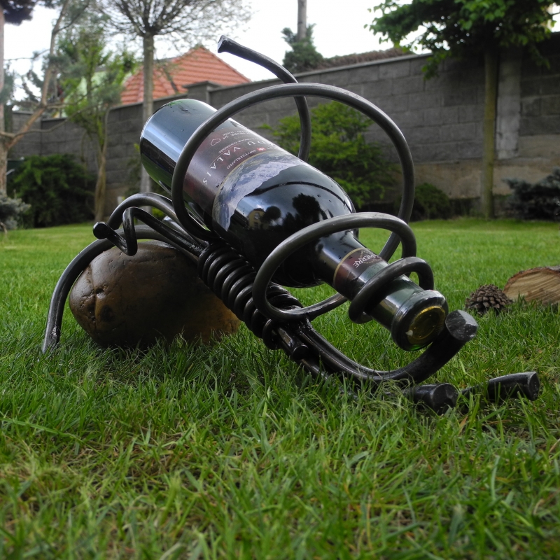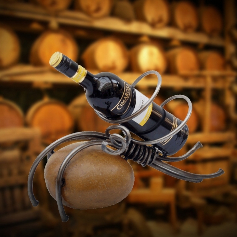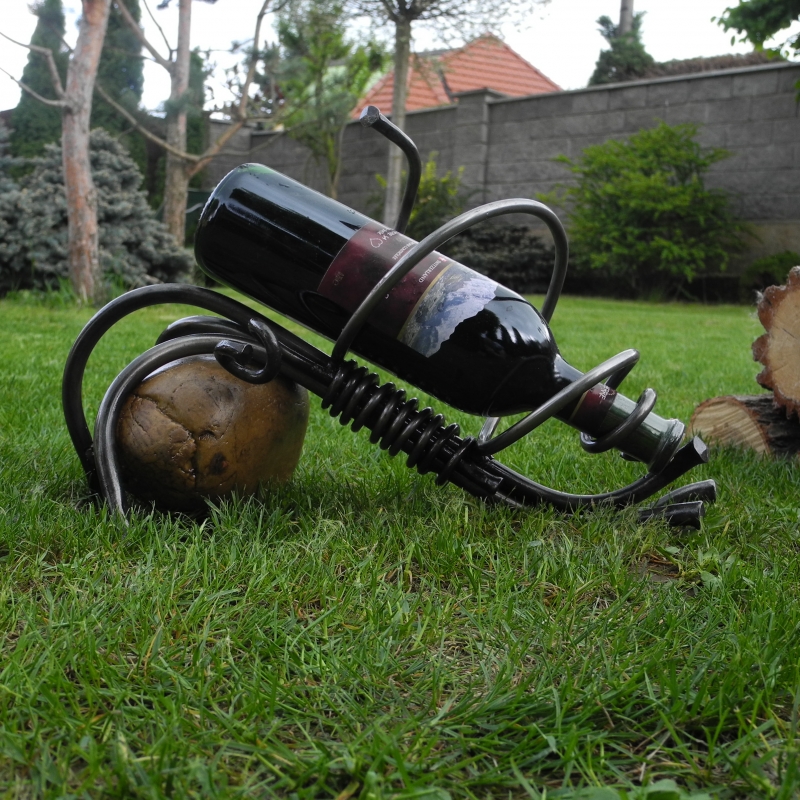Stojan na fľašu vína možno už doma máte. Ale tento ohromí vás aj tie, ktoré budete chcieť oným vínom pohostiť. Jedná sa o nevšedný prepojenie dvoch materiálov starých ako ľudstvo samo. V kameni o veľkosti 16 x 13 cm je zasadený kovový stojan. Celkové rozmery výrobku sú 42 x 22 x 28 cm. Stojan s váhou 5 kg bol vyrobený zručným českým kováčom, ktorý zaručuje, že každý výrobok je originál.