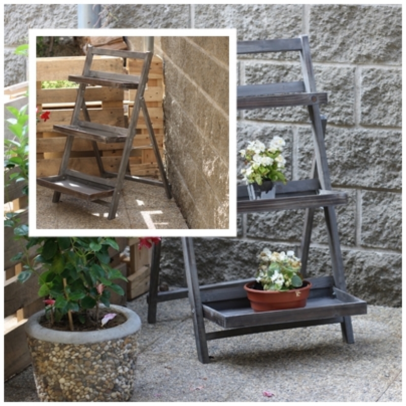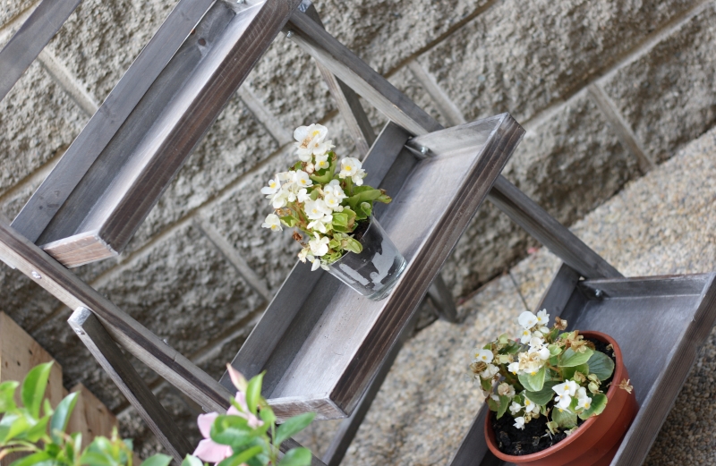Stojan na kvety pripomína malé rebrík. Jeho schodíky však slúžia ako polica na kvety.