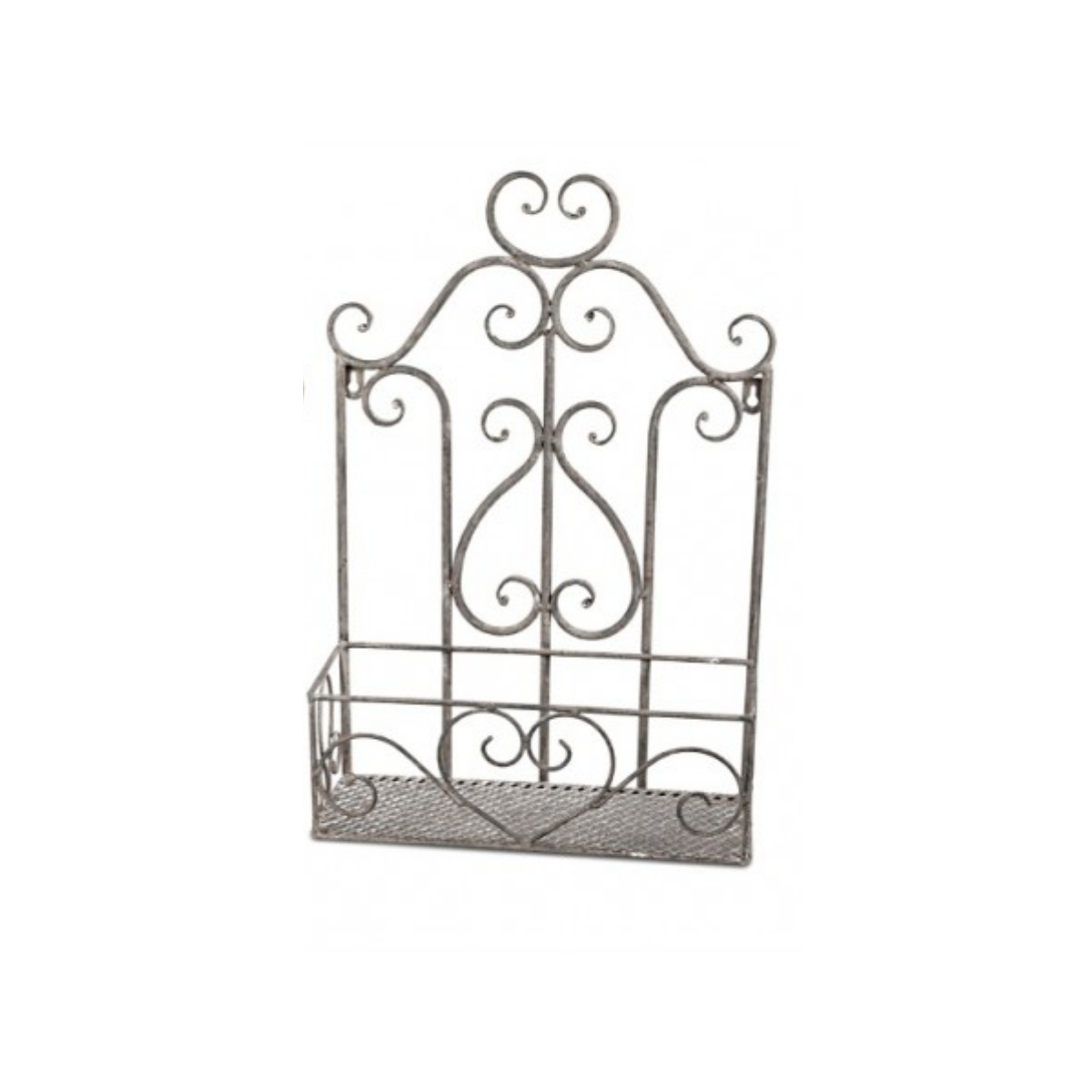 Kovový záves stojana na kvety / police, má rozmery 30 x 42cm a je colokovový. Môžete ho teda využiť ako v interiéri, tak aj vonku.