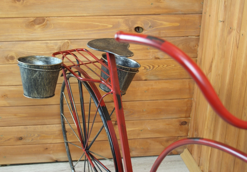 Samotné koleso je postavené no stojane, nad zadným kolesom má dva závesy na kvetináče.