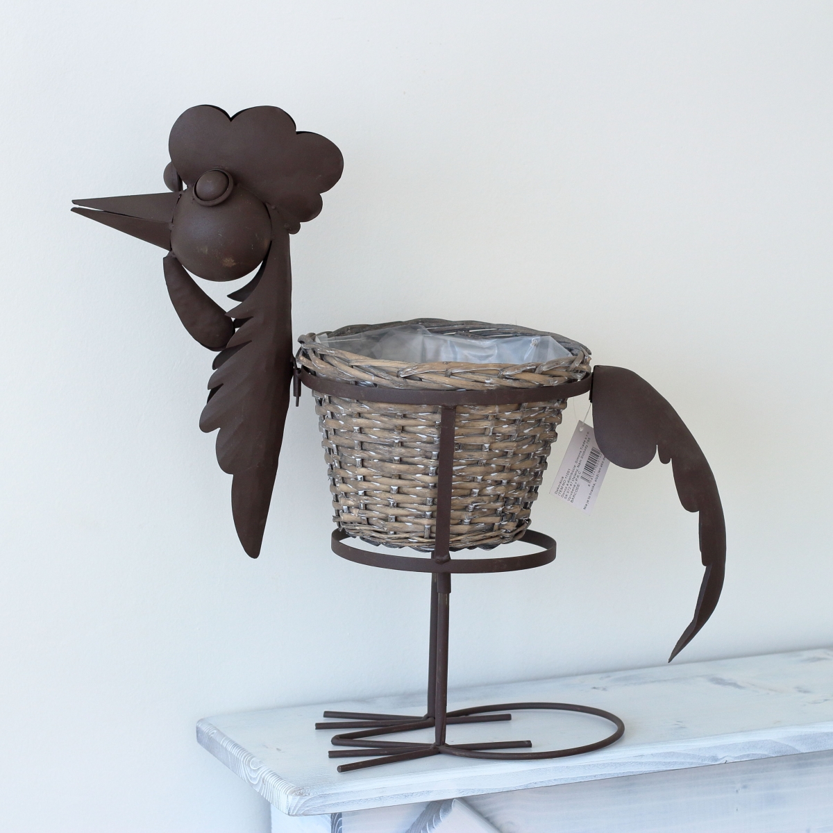 Stojan na kvety kohút 54cm má prútieny košík, do ktorého už stačí len umiestniť Vámi preferovanou rastlinou alebo kvetinami. Bude tak skutočne originálne dekorácie, ktoré oživí každý priestor alebo vonkajšie posedenie.