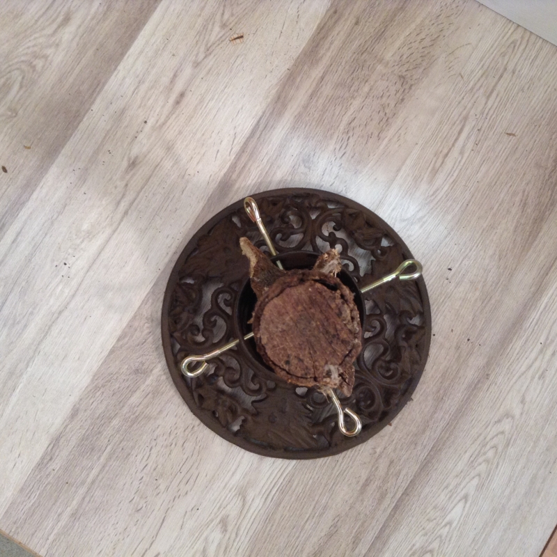 ento je liatinový , je guľatý a má priemer 36 cm a vnitřní prostor stojanu je ´pro kmen až do průměru 12,7cm .