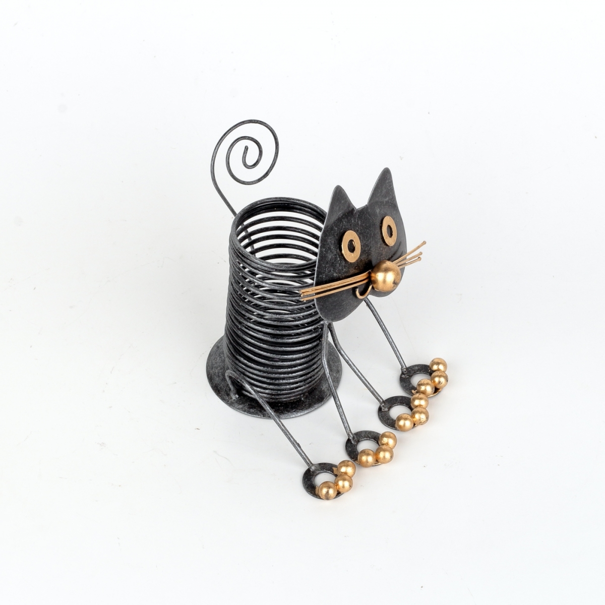 Stojanček na ceruzky v podobe roztomilej kovovej kočandy, ktorej telo zo špirály slúži ako box na uloženie písacích potrieb.