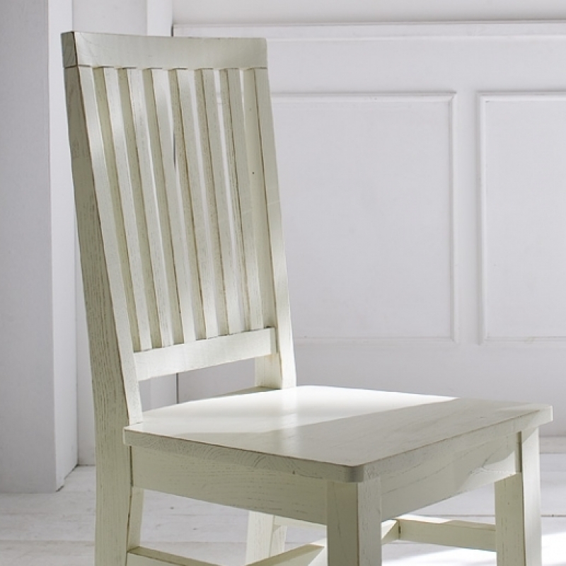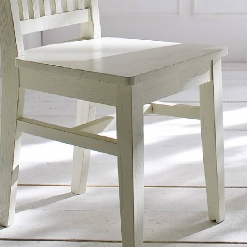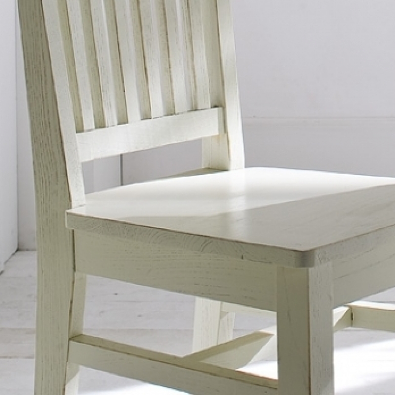 Prostá drevená stolička bielej farby sa vám bude páčiť stále . Jej pevná drevená konštrukcia sľubuje , že budete stoličku môcť používať po dlhý čas .