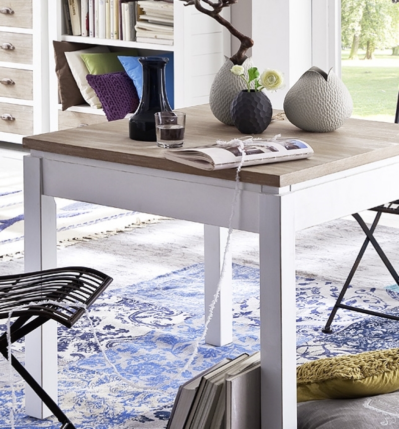 Stôl kombinuje bielu farbu s prírodnou farbou dreva. Necháva tak vyniknúť kráse dreva a zároveň je veľmi decentný a jednoduchý svojimi tvarmi.