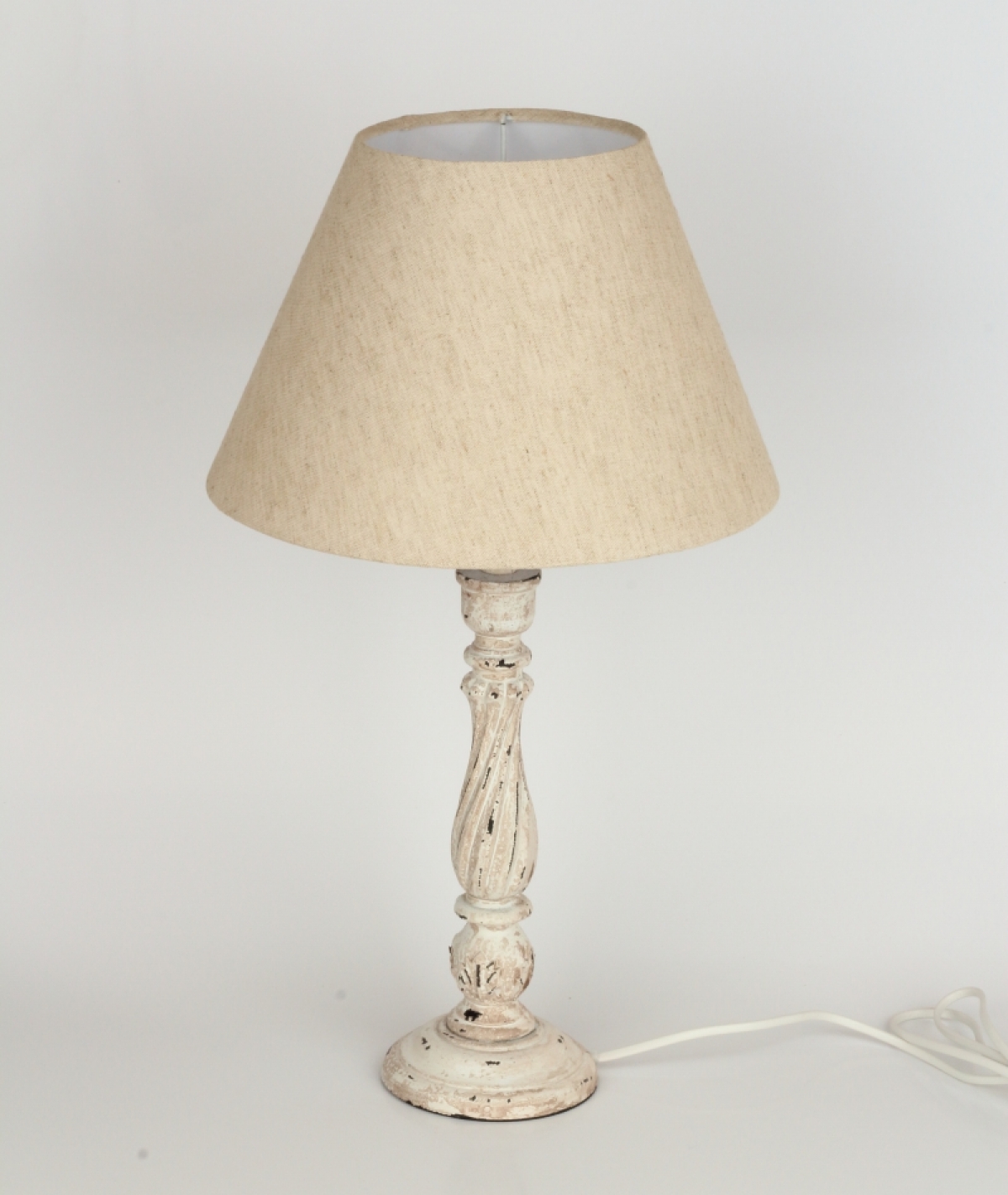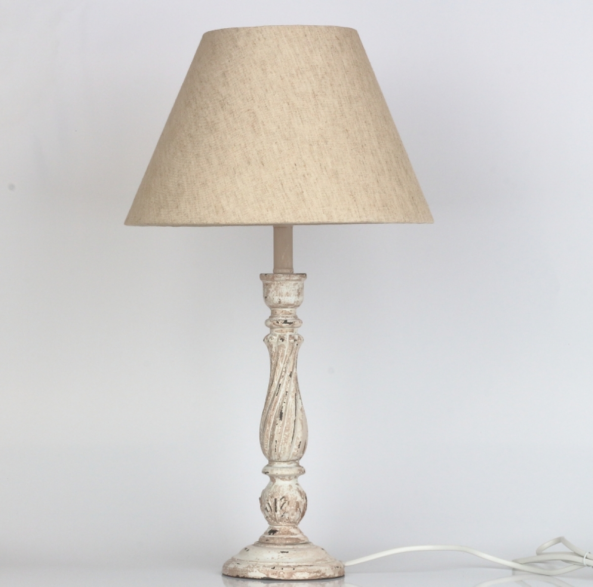 Stolná lampa béžová zdobená 52cm s krásnou vyrezávanou nohou, celá v elegantných tónoch béžovej farby. Podstavec je navyše s ľahkou patinou, ktorá má na bytových doplnkoch svoje dokonalé čaro.