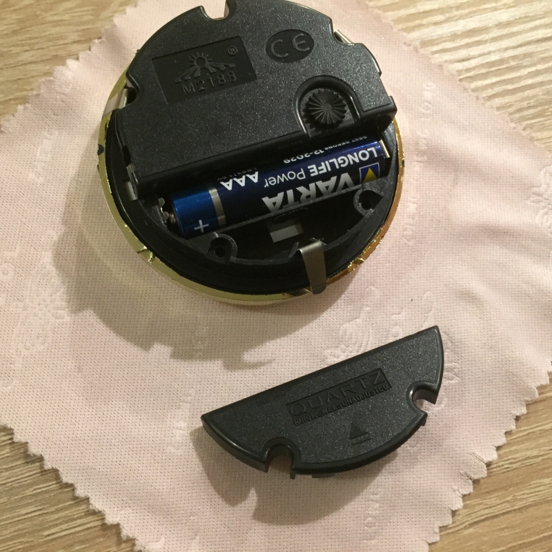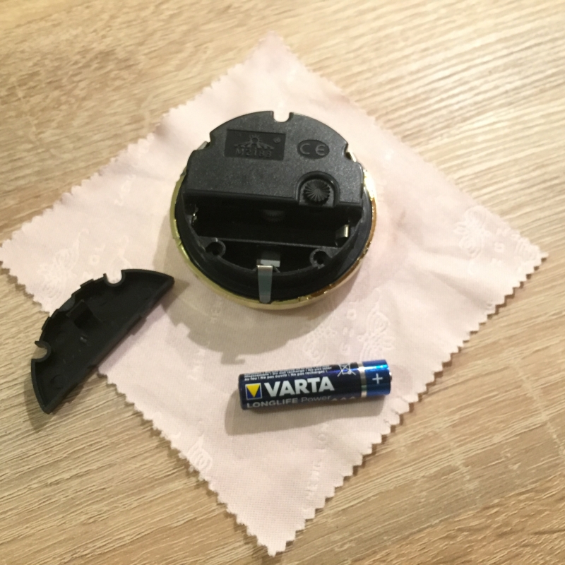 Rozmery: výška 13cm, podstavec 5,5x12cm, priemer ciferníka 6,5cm
