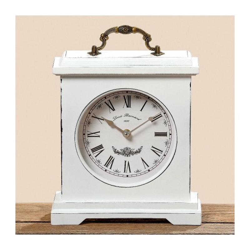 Netradičné biele stolové hodiny Vás zaujmú svojimi jednoduchými tvarmi v kombinácii s bohatým zdobením ciferníku a kovového ucha. Hodiny sú štýlovou dekoráciou v štýle vintage.