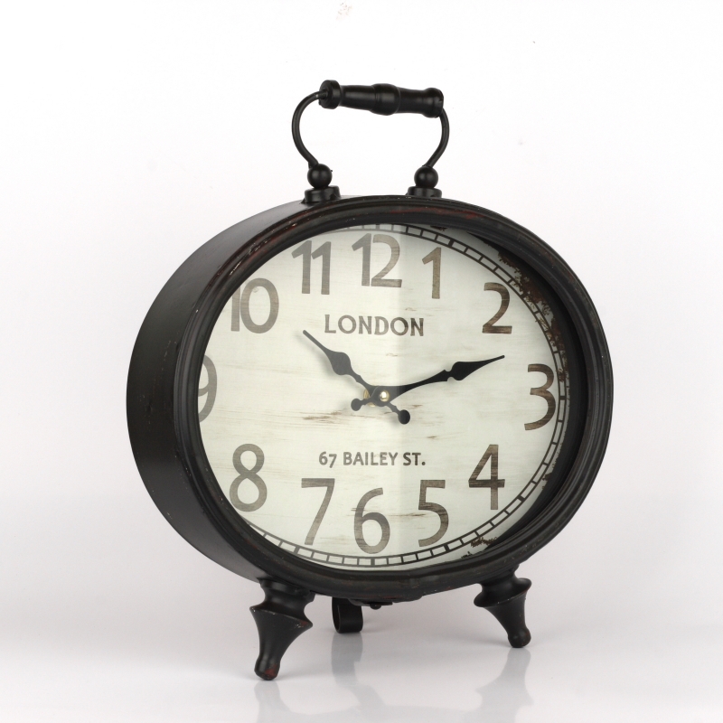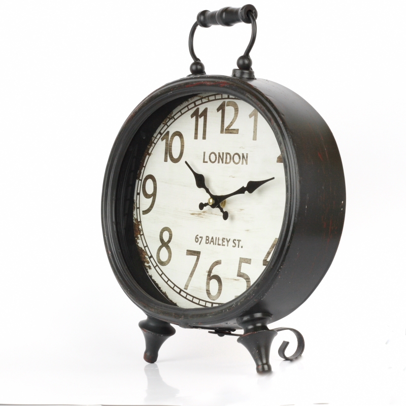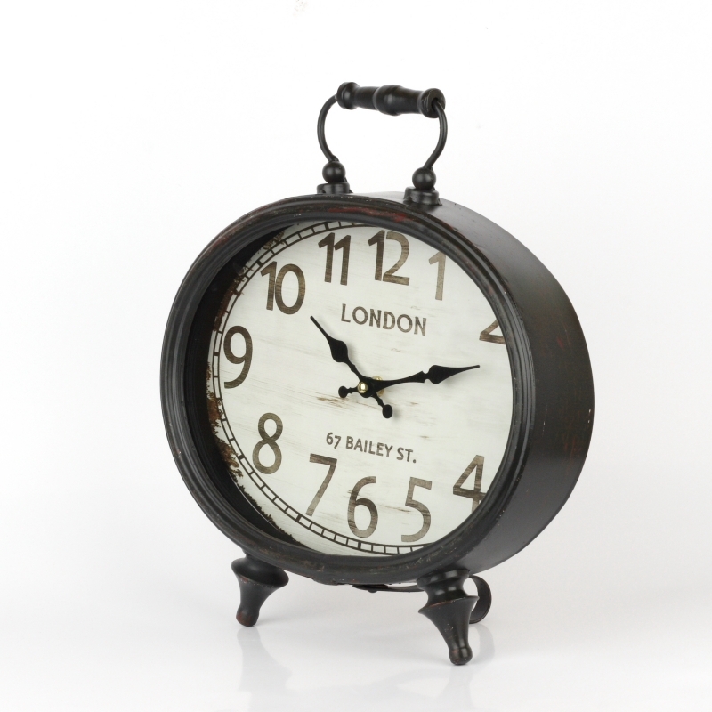 Stolové hodiny London 67 Bailey St. 34x31cm Tmavo hnedé stolové hodiny s ozdobným držadlom v anglickom štýle, sú krásnym doplnkom interiéru.