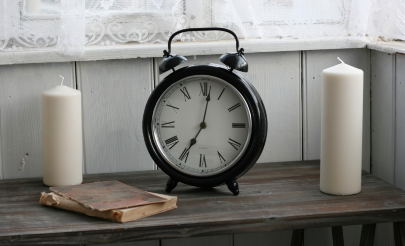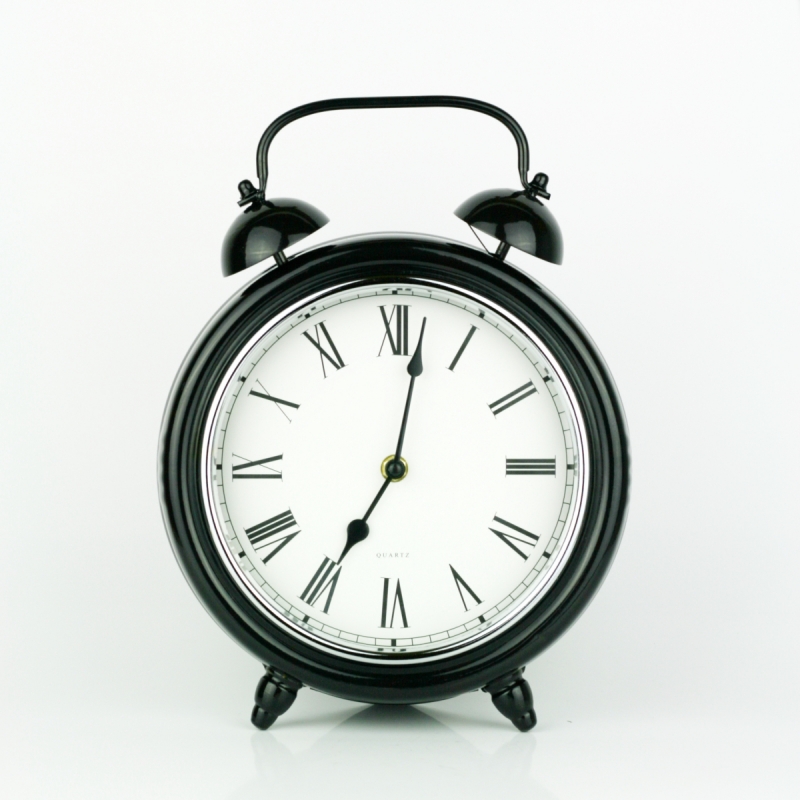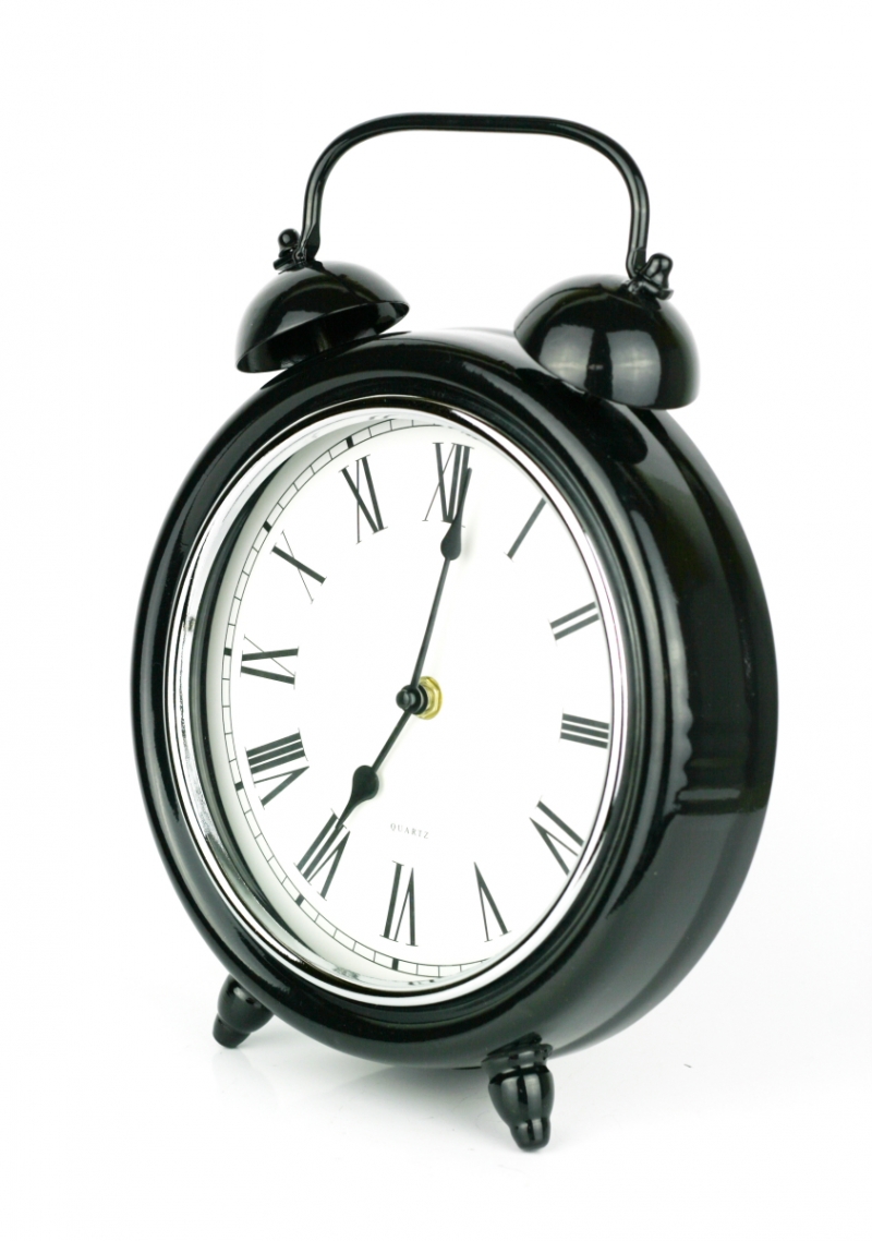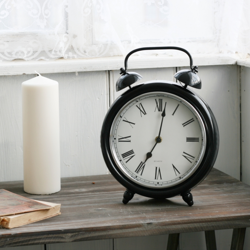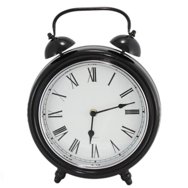 Tieto stolové hodiny majú podobu veľkého retro budíka v nesmrteľnej čierno-bielej farební kombinácii. Klasika sa tak hodí do akéhokoľvek interiéru.
