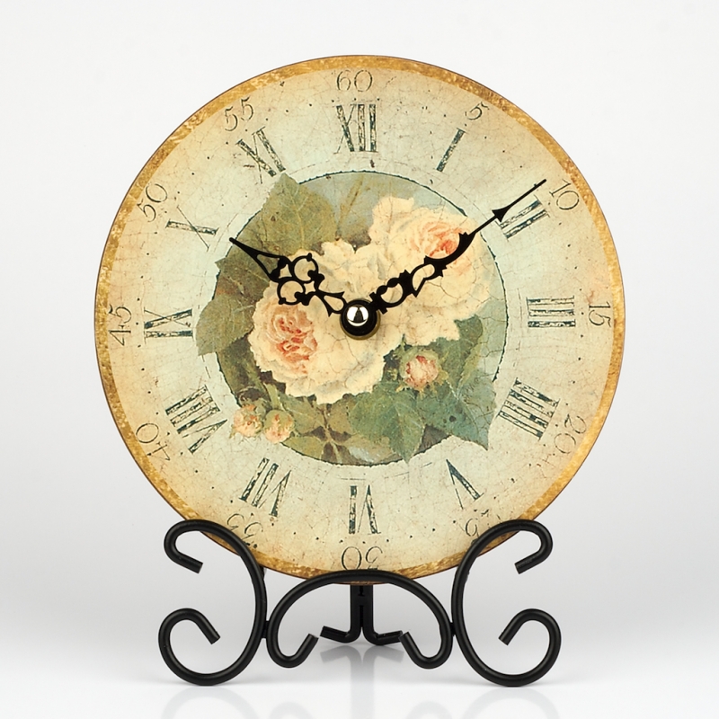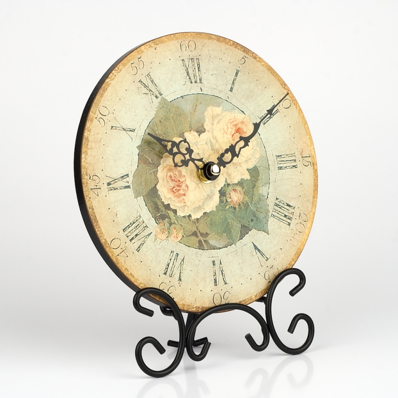 Hodiny stolní růže 19x22x4cm je velice vydařená dekorace pro zkrášlení Vaší kuchyně v domácnosti či na chalupě. Hodiny stolní jsou také výborným dárkem, kterým můžete potěšit jak vaši rodinu tak i přátele. Hodiny mají průměr 19cm, výšku i ze stojánkem 22cm a hloubku včetně strojku 4cm. Strojek pohání jedna AA 1.5V baterie. Retro doplněk ke stylovému nábytku.