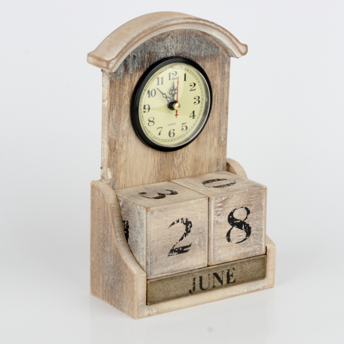 Stolové hodiny s kalendárom prírodnou s patinou 28x14x7cm