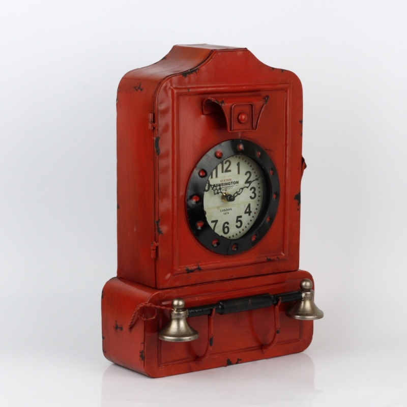 Stolové retro hodiny Telephone 41cm vo výraznej červenej farbe len tak nikdy neprehliadnete. Netradičné kovové hodiny v anglickom duchu pripomínajúce starý telefónny prístroj.