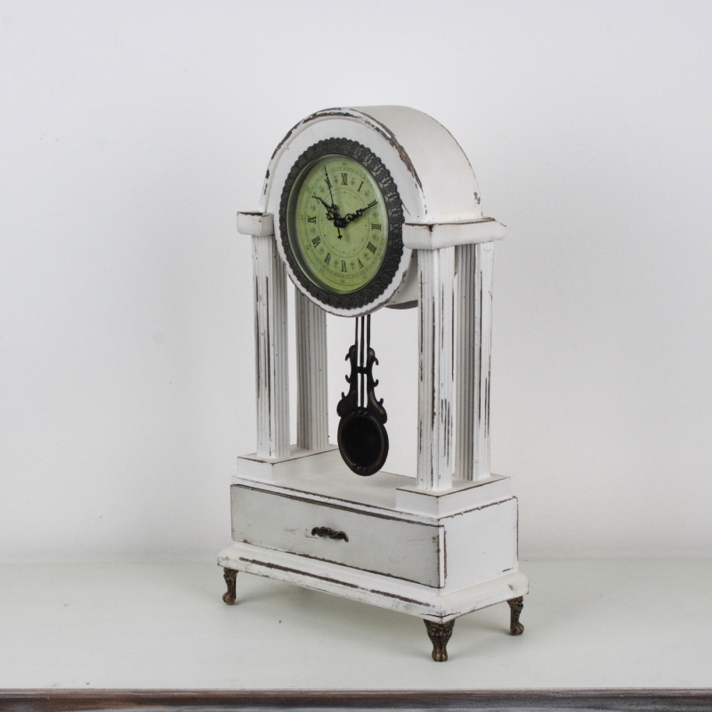 Stolové retro kyvadlové hodiny biele 46,5 cm
