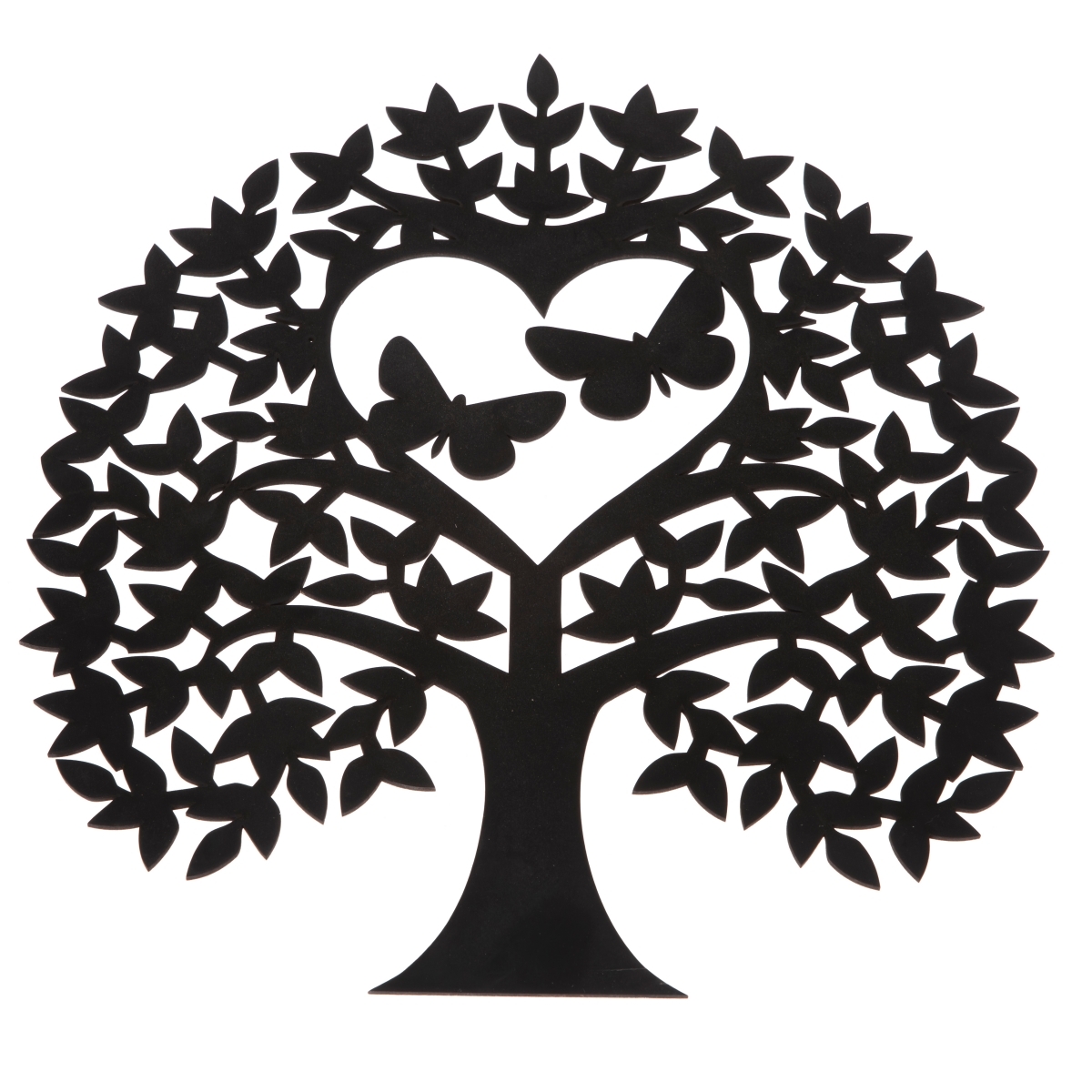 Strom života dekorácia s motýľmi v srdci je vyrezaný obraz do drevenej preglejky a opatrený kvalitnou čiernou lazúrou. Najlepšie vynikne na svetlej stene napr. v spálni alebo detskej izbičke.