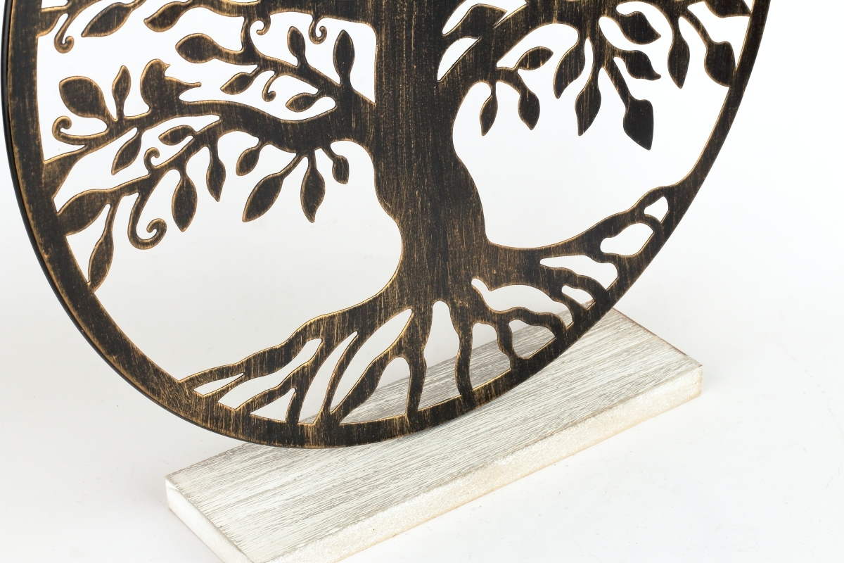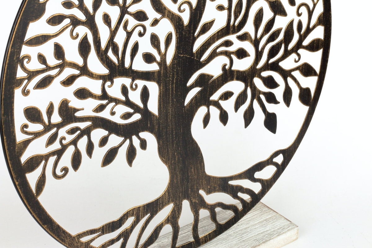 Kovový strom života na drevenej podeste. Dekorácia, ktorá je ideálna pre ezoterických záujemcov. Tento kovový strom života môže byť umiestnený na parapete, alebo na stolíku, a prinesie do vášho domova pozitívnu energiu a prírodnú atmosféru. Naše produkty odhalia príbeh prírody a prinesú pozitívnu energiu do interiéru.