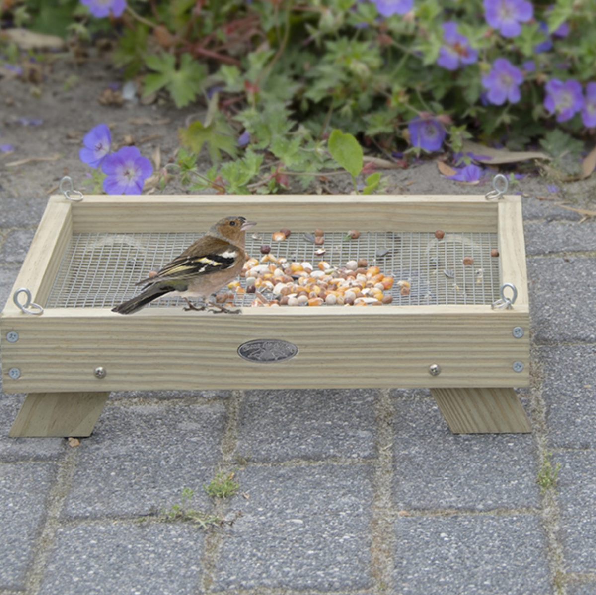 Tento vtáčí stôl možno tiež zavesiť. Vtáčie stôl položený na zemi priťahuje vtáky, ako je vrabec domový, červienka obyčajná, kos, stromový vrabec, oriešok a škorec. Keď je zavesený, môže prilákať vtáky, ako je sýkorka, sýkorka všeobecná a sýkorka chvostové.