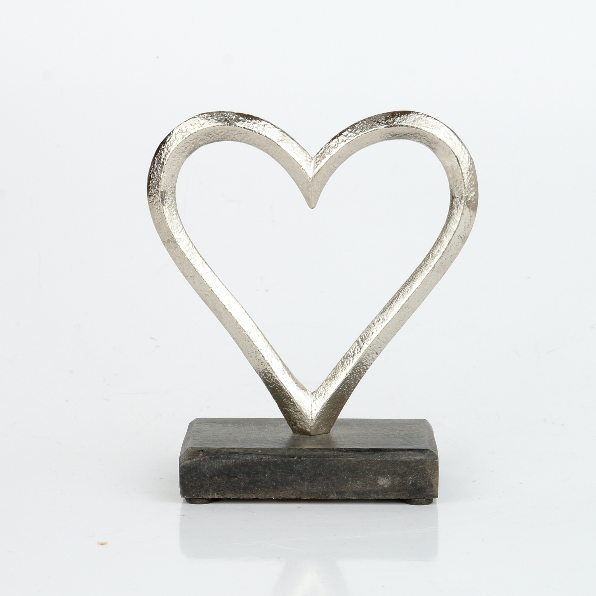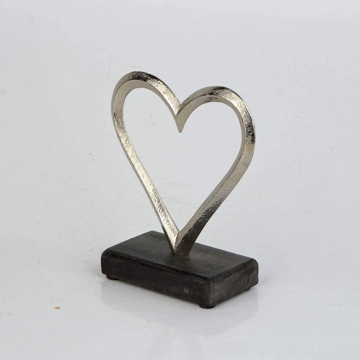 Primárne svadobná dekorácia, v podobe väčšieho strieborného srdca na drevenom podstavci tmavo hnedej farby. Je vhodná aj ako klasická bytová dekorácia pre každého s romantickou dušou. Pri svadobných hostinách sa toto srdiečko hodí napríklad na dekoráciu stolov.