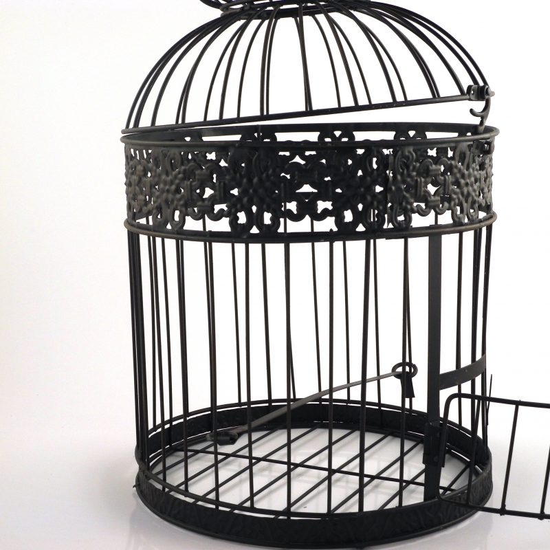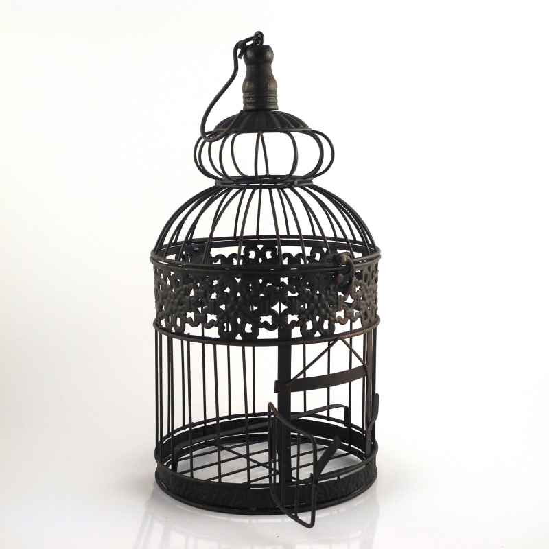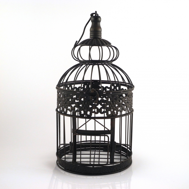 Svadobný dar klietka retro 56cm na vtáčiky s orientálnym tvarom ponúkame v dvoch veľkostiach - vo výške 56 cm a 47cm. Klietka dek1623 je vysoká 56cm vrátane kovového háčika, v čiernom kovovom prevedení a môže byť použitá ako doma, tak aj vo vonkajšom prostředí.Klec o priemere 26cm má dobre uzatvárateľné dvierka, jej vrchná časť je odnímateľná. Pre vtáčiky je vnútri prichystané bidielko.