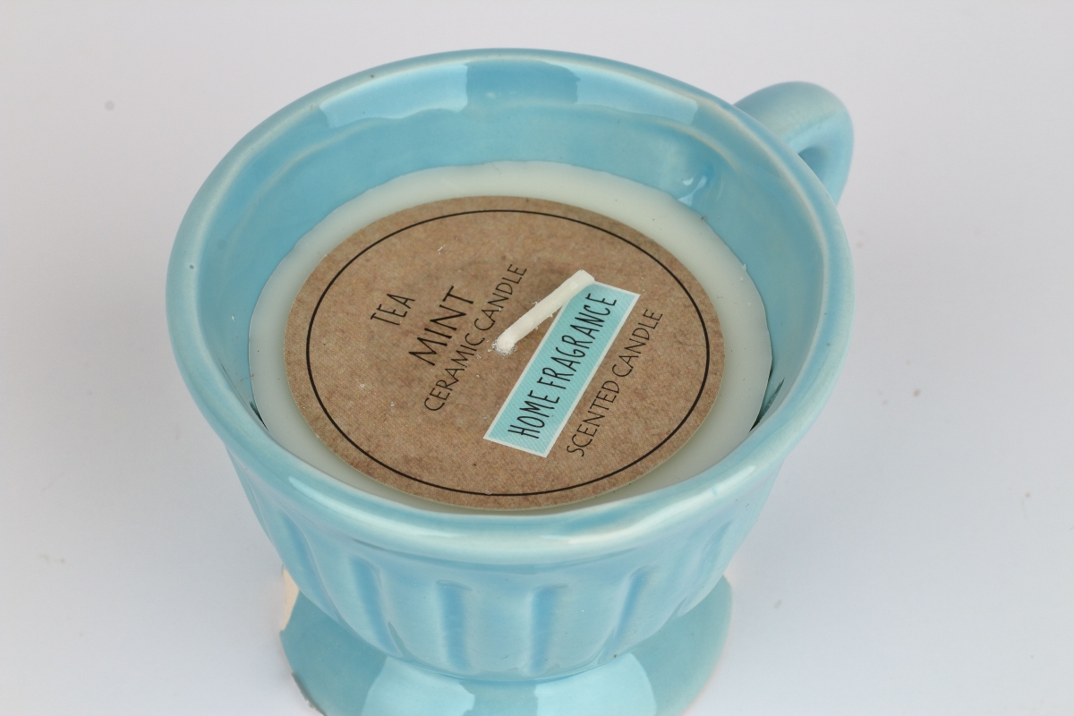 Sviečka v modrom hrnčeku 9x8x6cm s vôňou mäty bude milým darčekom pre Vašich blízkych.